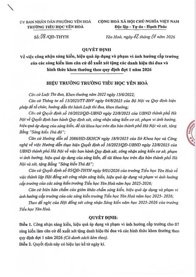 Trường Tiểu học Yên Hoà – ngôi trường tiêu biểu của quận Cầu Giấy, Hà Nội – là nơi khởi đầu hành trình tri thức và nhân cách cho học sinh. Với môi trường học tập thân thiện, cơ sở vật chất hiện đại cùng đội ngũ giáo viên tận tâm, nhà trường không ngừng đổi mới để mang đến chất lượng giáo dục toàn diện.