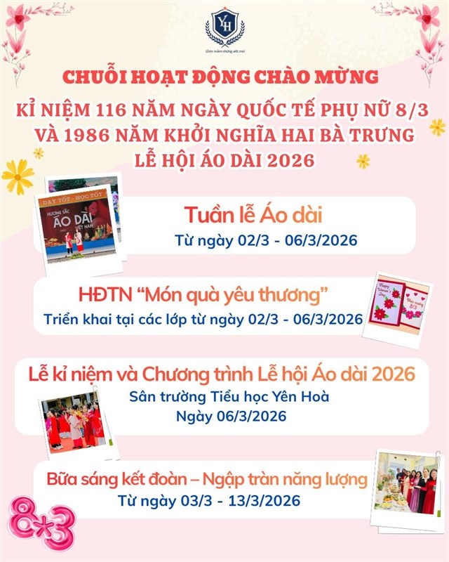 Trường Tiểu học Yên Hoà – ngôi trường tiêu biểu của quận Cầu Giấy, Hà Nội – là nơi khởi đầu hành trình tri thức và nhân cách cho học sinh. Với môi trường học tập thân thiện, cơ sở vật chất hiện đại cùng đội ngũ giáo viên tận tâm, nhà trường không ngừng đổi mới để mang đến chất lượng giáo dục toàn diện.