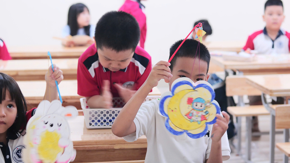 Hình ảnh Minh Chính hào hứng cùng các bạn trang trí chiếc đèn trung thu