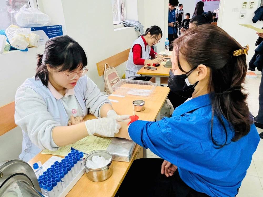 Trong không khí ấm áp của những ngày giáp Tết, chúng ta dễ dàng bắt gặp những gương mặt tiêu biểu, luôn đi đầu trong các hoạt động phong trào của nhà trường như cô Phạm Chu Linh, cô Nguyễn Thị Hương, cô Nguyễn Thị Phượng, cô Trịnh Thị Hải và cô Nguyễn Diệu Linh. Dù bận rộn với công tác chuyên môn và lịch trình giảng dạy dày đặc, các cô vẫn sắp xếp thời gian có mặt từ sớm, sẵn sàng đóng góp những đơn vị máu quý giá cho ngân hàng máu quốc gia.