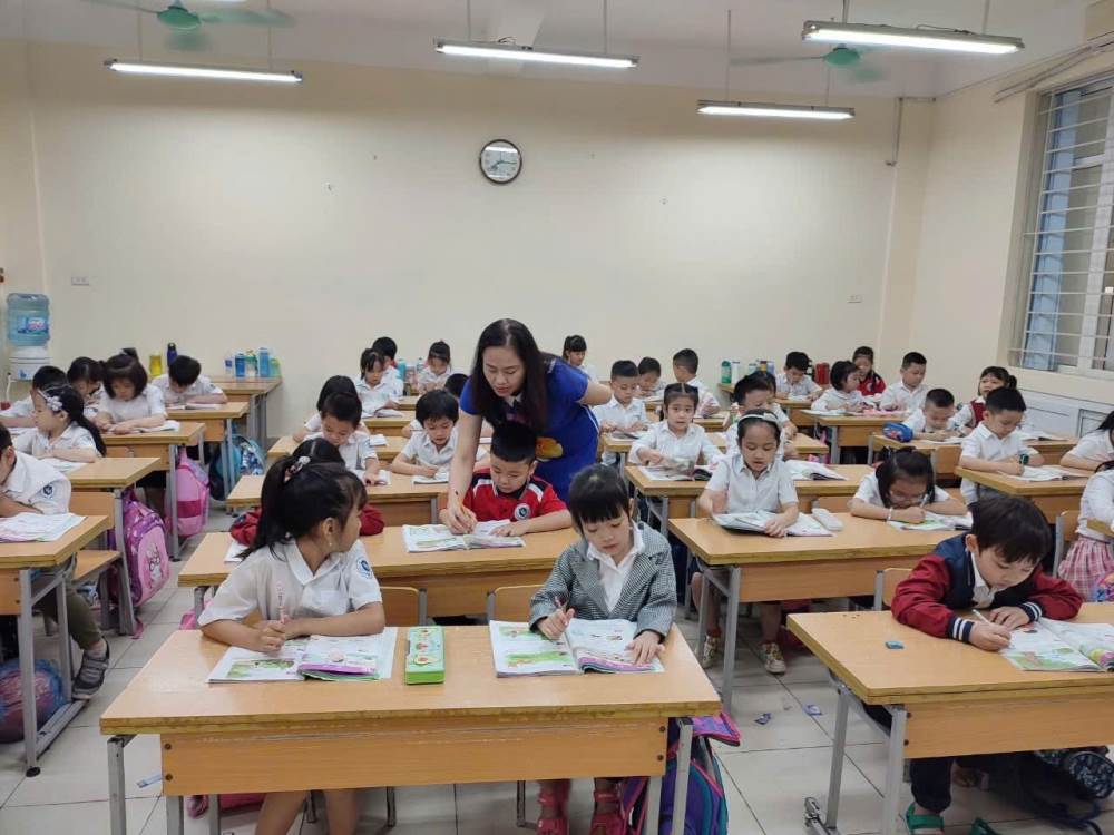 Nhiều năm liền gắn bó với học sinh lớp 1, cô luôn tận tụy uốn nắn từng nét chữ, ân cần giúp các em quên đi sự bỡ ngỡ của ngày đầu tiên tới trường.