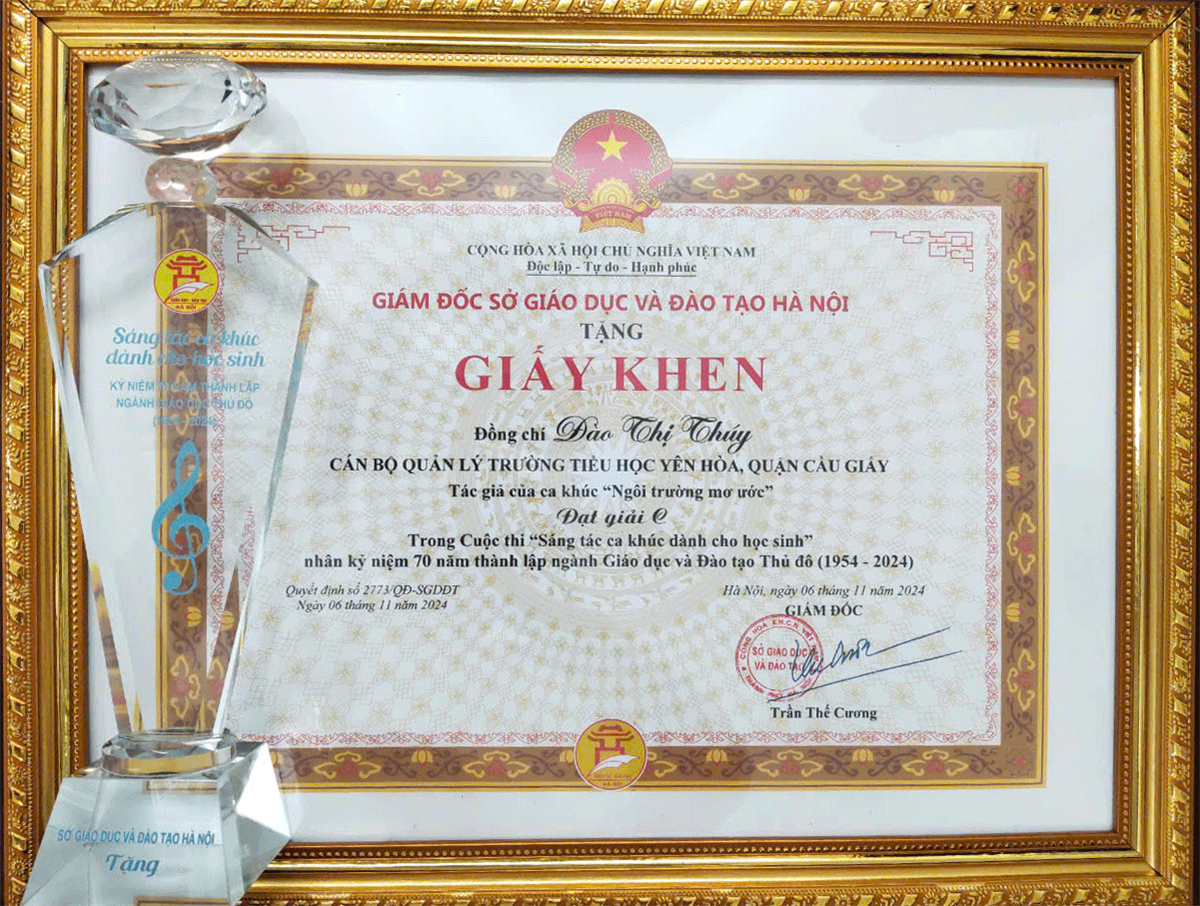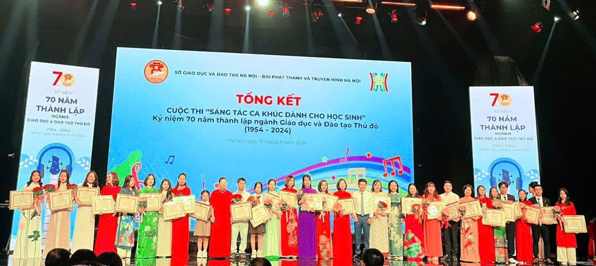 Ngày 15/11/2024, Sở Giáo dục và Đào tạo (GD&ĐT) Hà Nội tổ chức tổng kết Cuộc thi “Sáng tác ca khúc dành cho học sinh”. Thật vinh dự và tự hào khi bài hát “Ngôi trường mơ ước” với giai điệu vui nhộn và ca từ trong trẻo, hồn nhiên đã xuất sắc lọt vào top 70 ca khúc hay nhất trong tổng số 1024 tác phẩm dự thi.