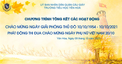 Trong không khí vui tươi, phấn khởi chào đón kỷ niệm 67 năm ngày giải phóng Thủ đô Hà Nội (10/10/1954 – 10/10/2021). Tối ngày 09/10/2021, Liên Đội trường tiểu học Yên Hòa hân hoan tổ chức chương trình tổng kết các hoạt động chào mừng ngày giải phóng Thủ đô, tổng kết tuần lễ học tập suốt đời và tiếp tục phát động phong trào thi đua mới hướng tới 91 năm ngày phụ nữ Việt Nam 20/10.