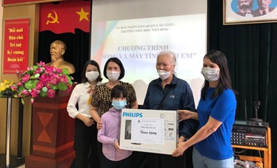 Thực hiện chương trình “Máy tính cho em” của Sở GD&ĐT, trường Tiểu học Yên Hòa đã nhanh chóng rà soát các con học sinh có hoàn cảnh khó khăn chưa có thiết bị đáp ứng việc học trực tuyến, đồng thời tích cực tuyên truyền, vận động cán bộ, giáo viên, nhân viên và phụ huynh, học sinh hưởng ứng, tham gia chương trình. Chỉ trong ít ngày, nhà trường đã nhận được sự quan tâm, ủng hộ và đóng góp nhiệt tình của tập thể cán bộ giáo viên nhà trường và các bậc phụ huynh. Toàn bộ số tiền ủng hộ được, nhà trường đã phối kết hợp với Ban đại diện hội CMHS tiến hành mua và trao tặng máy tính cho các con.