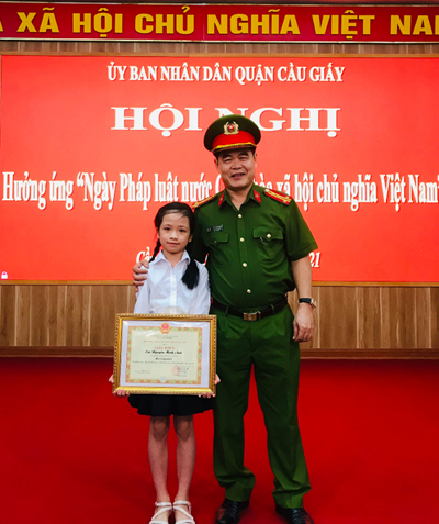 Trường được nhận Giấy khen Đạt giải Nhất. Bài dự thi của em Nguyễn Minh Anh, lớp 5D xuất sắc vượt qua hơn 32 nghìn bài dự thi của học sinh từ 10 tuổi trở lên đạt giải Nhất.