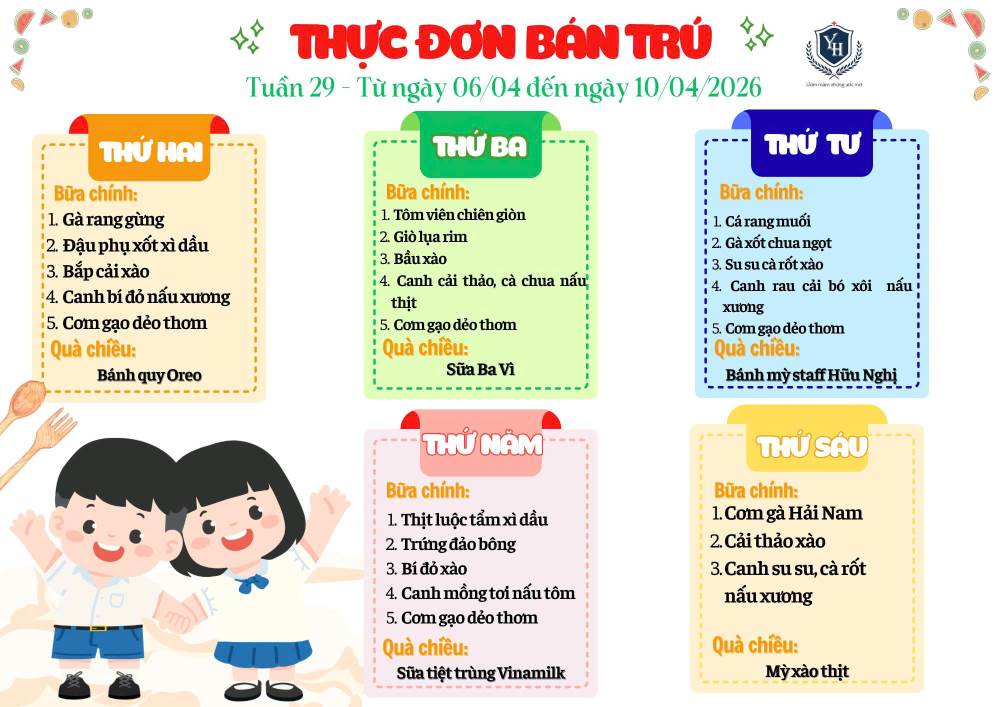 THỰC ĐƠN BÁN TRÚ - TUẦN 29 + 30