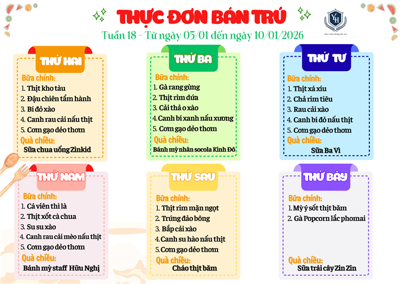 THỰC ĐƠN BÁN TRÚ - TUẦN 18