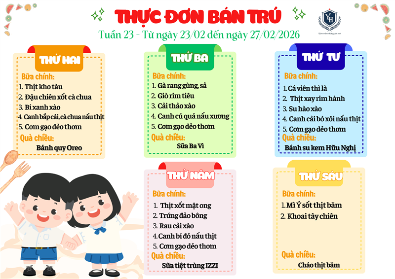 THỰC ĐƠN BÁN TRÚ - TUẦN 23