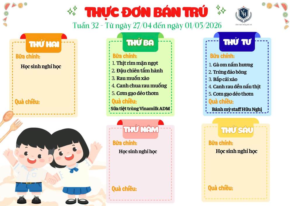 THỰC ĐƠN BÁN TRÚ - TUẦN 27+28