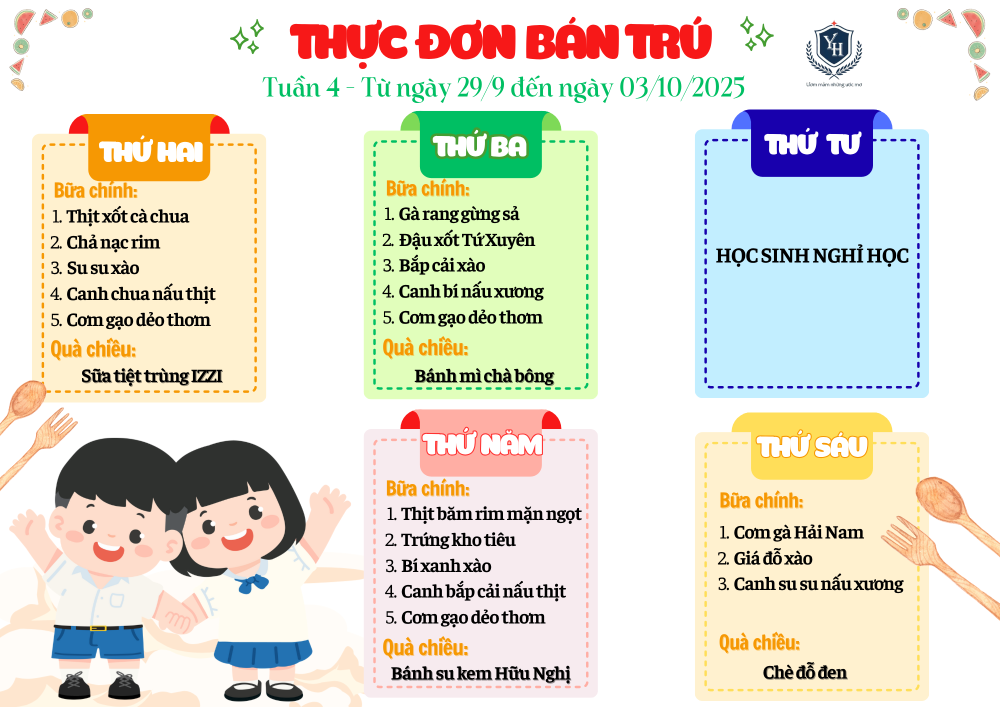 THỰC ĐƠN BÁN TRÚ - TUẦN 4