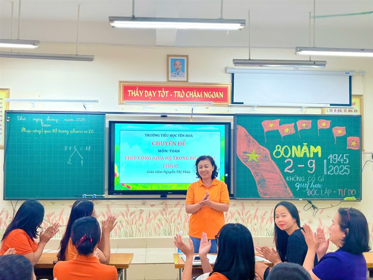 Thực hiện Kế hoạch bồi dưỡng chuyên môn năm học 2025–2026, chiều ngày 27/8/2025, khối 2 trường Tiểu học Yên Hoà đã tổ chức thành công buổi sinh hoạt chuyên đề môn Toán lớp 2 với bài “Phép cộng (qua 10) trong phạm vi 20” – tiết 1.