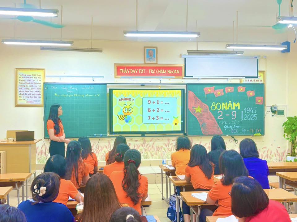 Phần thảo luận chuyên môn sau tiết dạy diễn ra trong không khí hăng say, sôi nổi. Các tổ khối đã thẳng thắn chia sẻ những góc nhìn khác nhau về phương pháp tổ chức hoạt động học, cách khơi gợi tư duy và giúp học sinh dễ dàng xử lí các phép tính trong phạm vi 20.