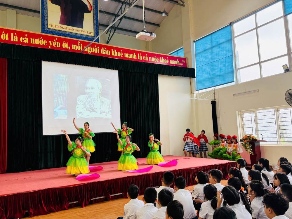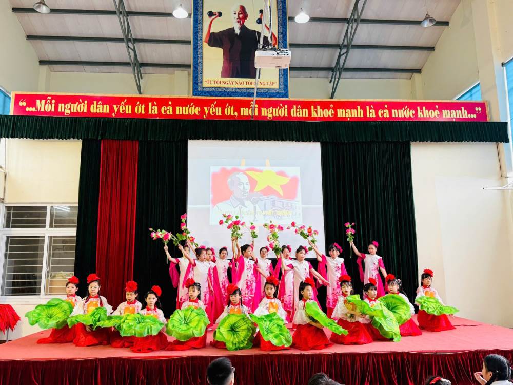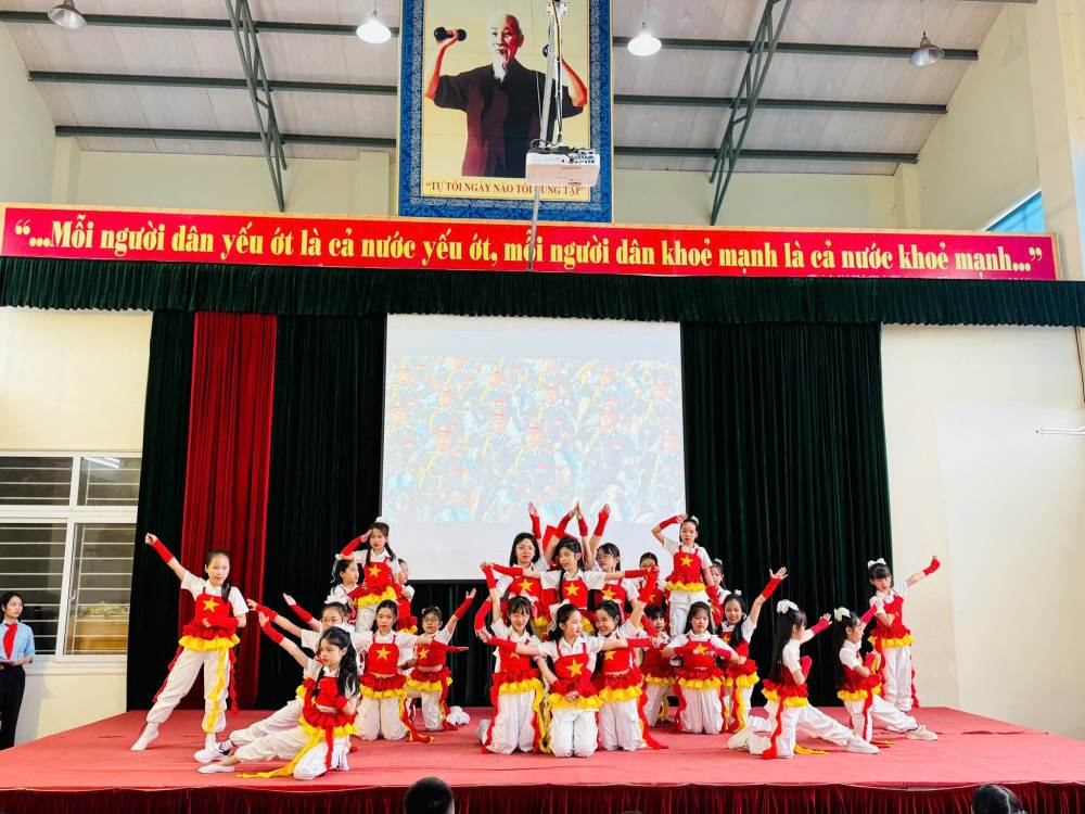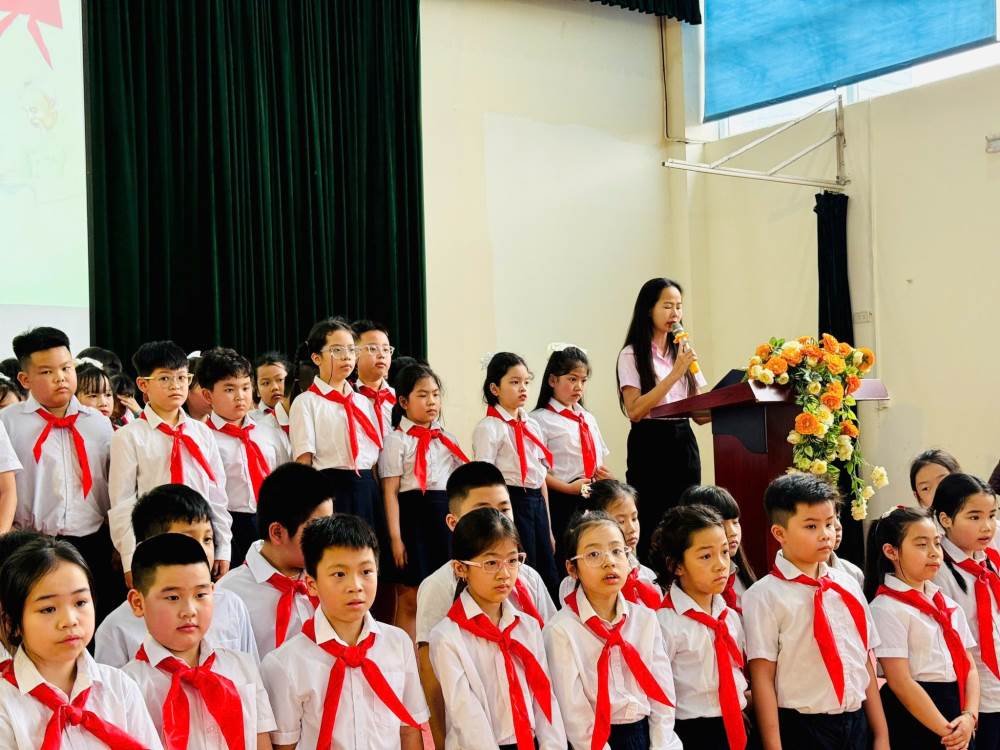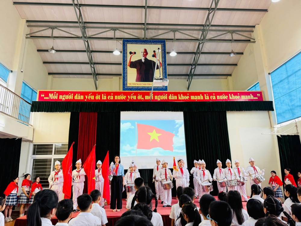 Mở đầu chương trình là nghi lễ chào cờ trang nghiêm. Dưới lá cờ Tổ quốc, toàn thể cán bộ, giáo viên và học sinh cùng cất cao tiếng hát Quốc ca, Đội ca, thể hiện lòng tự hào, ý thức trách nhiệm và quyết tâm học tập, rèn luyện để xứng đáng là con ngoan, trò giỏi, cháu ngoan Bác Hồ.