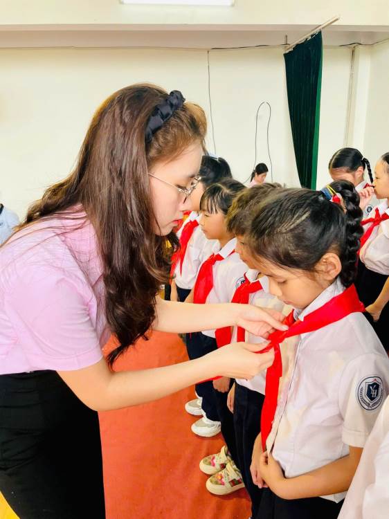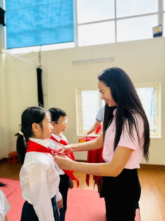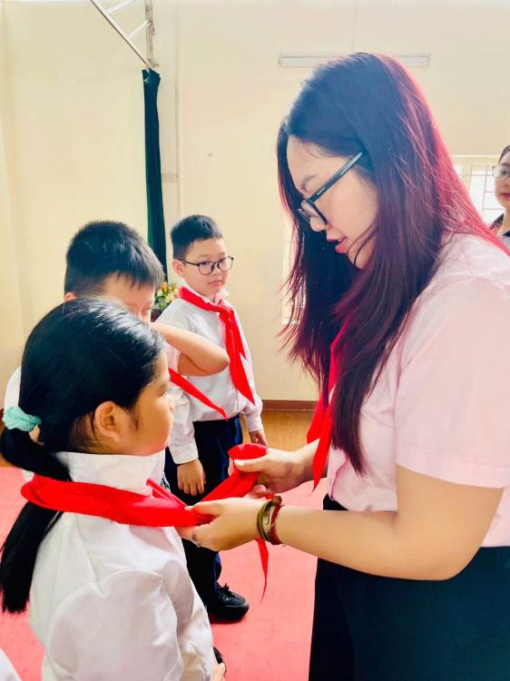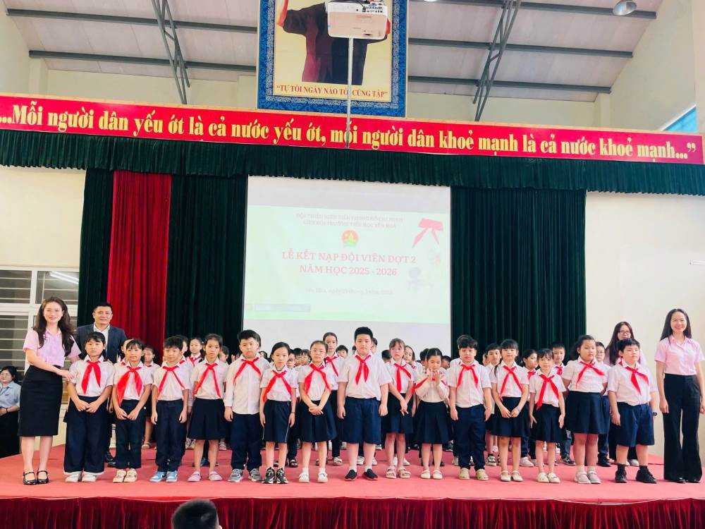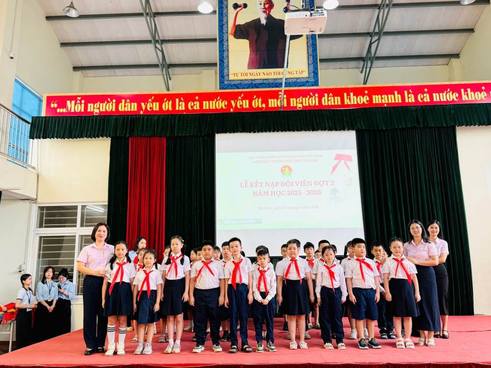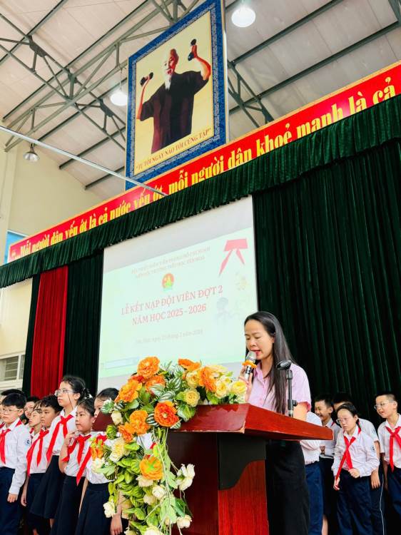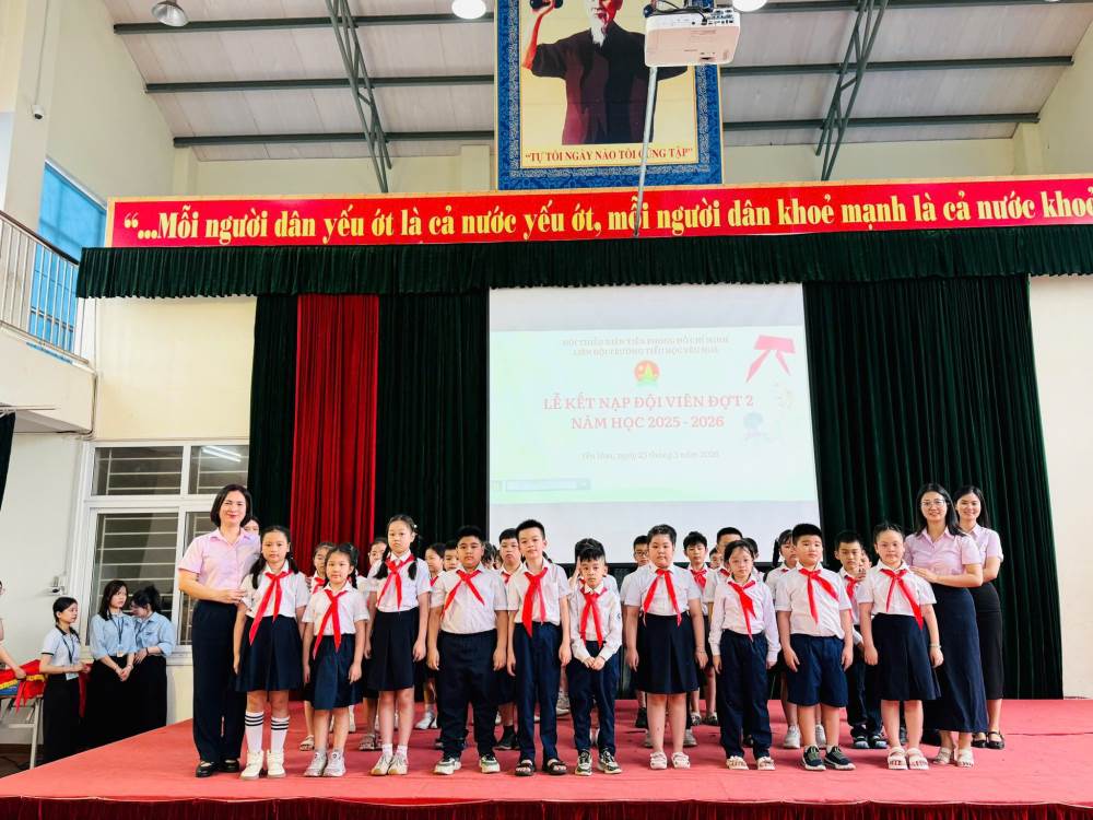 Đặc biệt, trong không khí trang nghiêm và đầy tự hào, Liên đội đã tổ chức Lễ kết nạp Đội viên đợt 2 năm học 2025-2026 cho 129 học sinh ưu tú. Đại diện cho 129 bạn thiếu niên nhi đồng ưu tú, em Tô Phạm Anh Thư đã lên đọc đơn xin vào Đội với niềm vinh dự và khát khao được đứng trong hàng ngũ của Đội TNTP Hồ Chí Minh. Tiếp đó, em Công Phương Gia Hân đã thay mặt các đội viên mới đọc lời hứa, thể hiện quyết tâm học tập, rèn luyện, xứng đáng với danh hiệu người đội viên.