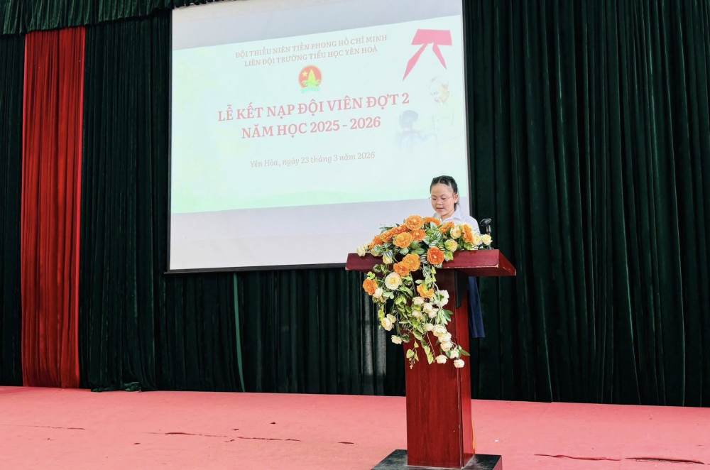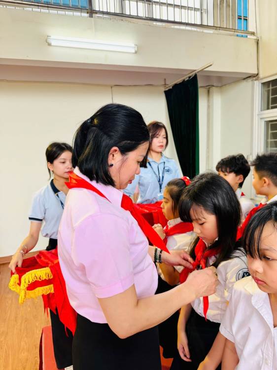 Khép lại buổi lễ, cô giáo Nguyễn Thị Phương Liên – Phó Hiệu trưởng nhà trường đã có những lời căn dặn sâu sắc tới toàn thể học sinh, đặc biệt là các đội viên mới. Những lời dặn dò đầy tâm huyết của cô chính là nguồn động viên để các em tiếp tục phấn đấu, không ngừng trưởng thành, góp phần xây dựng Liên đội ngày càng vững mạnh.