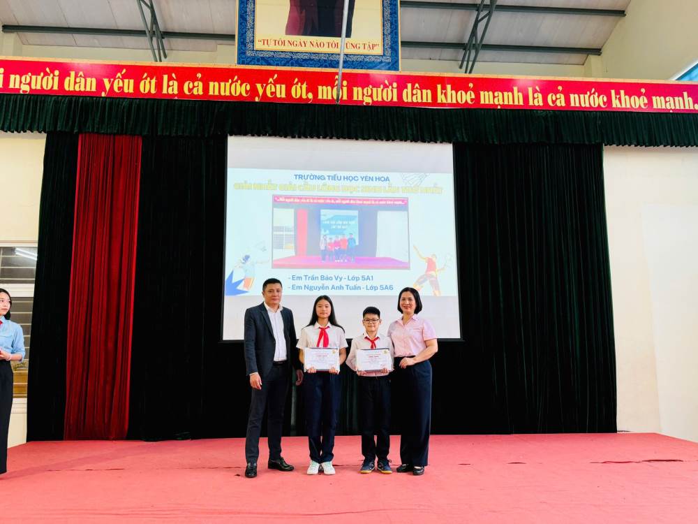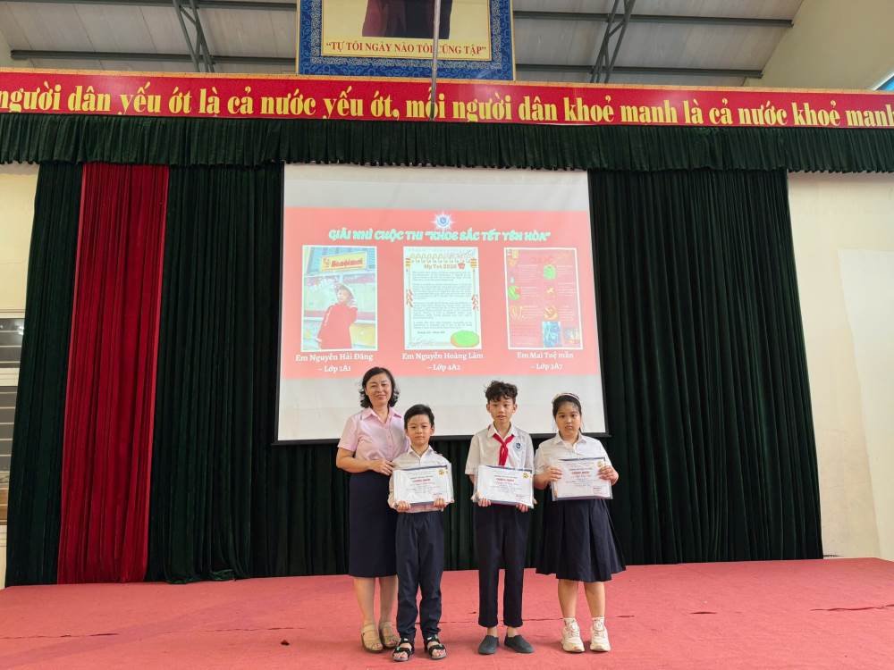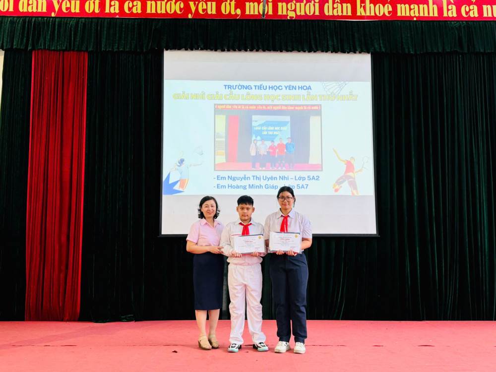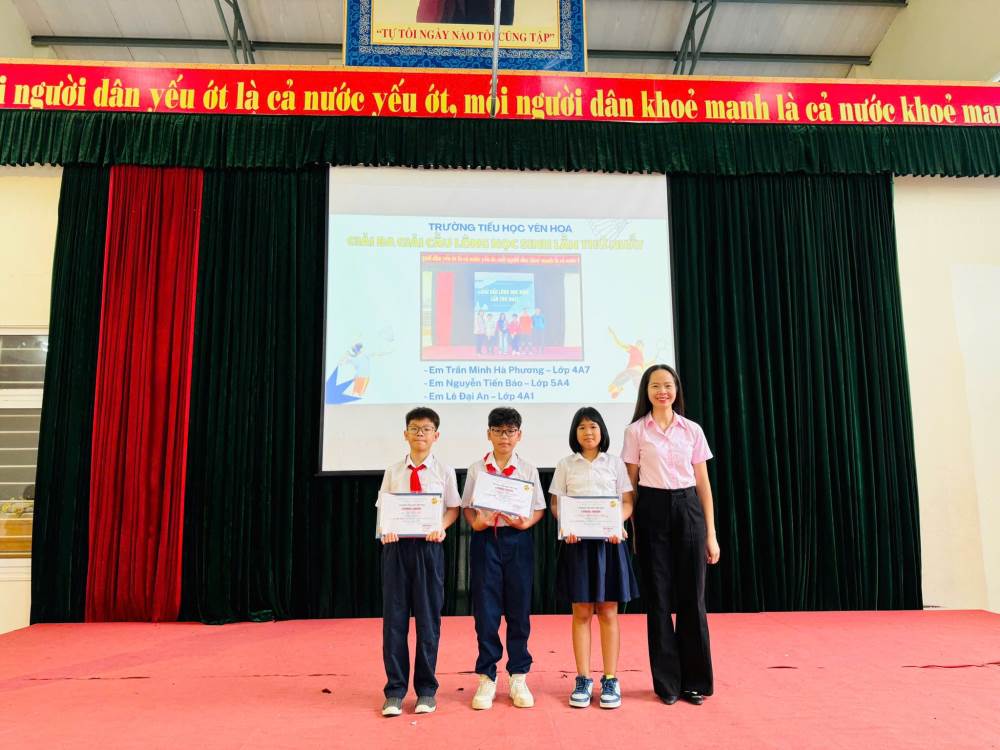 Góp phần làm nên ý nghĩa của chương trình, nhà trường đã trao giải cho các em học sinh đạt thành tích xuất sắc trong giải “Giải Cầu lông học sinh lần thứ nhất” và cuộc thi tiếng Anh “Khoe sắc Tết Yên Hòa”. Đây không chỉ là sự ghi nhận xứng đáng cho sự nỗ lực, cố gắng của các em mà còn là động lực để các em tiếp tục phát huy năng lực, tự tin thể hiện bản thân trong học tập và các hoạt động phong trào.