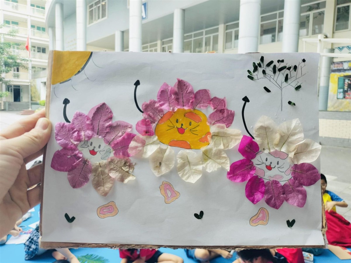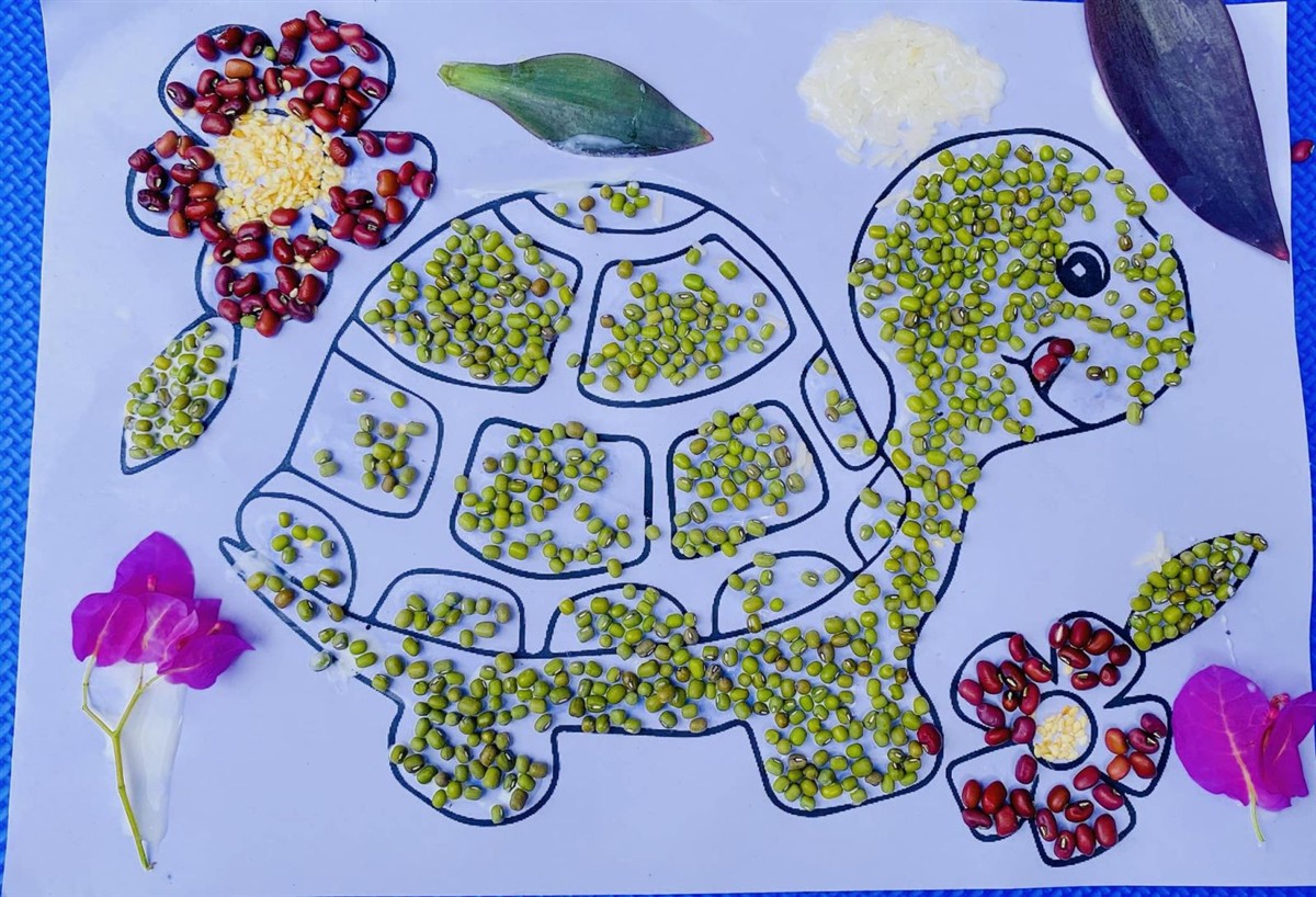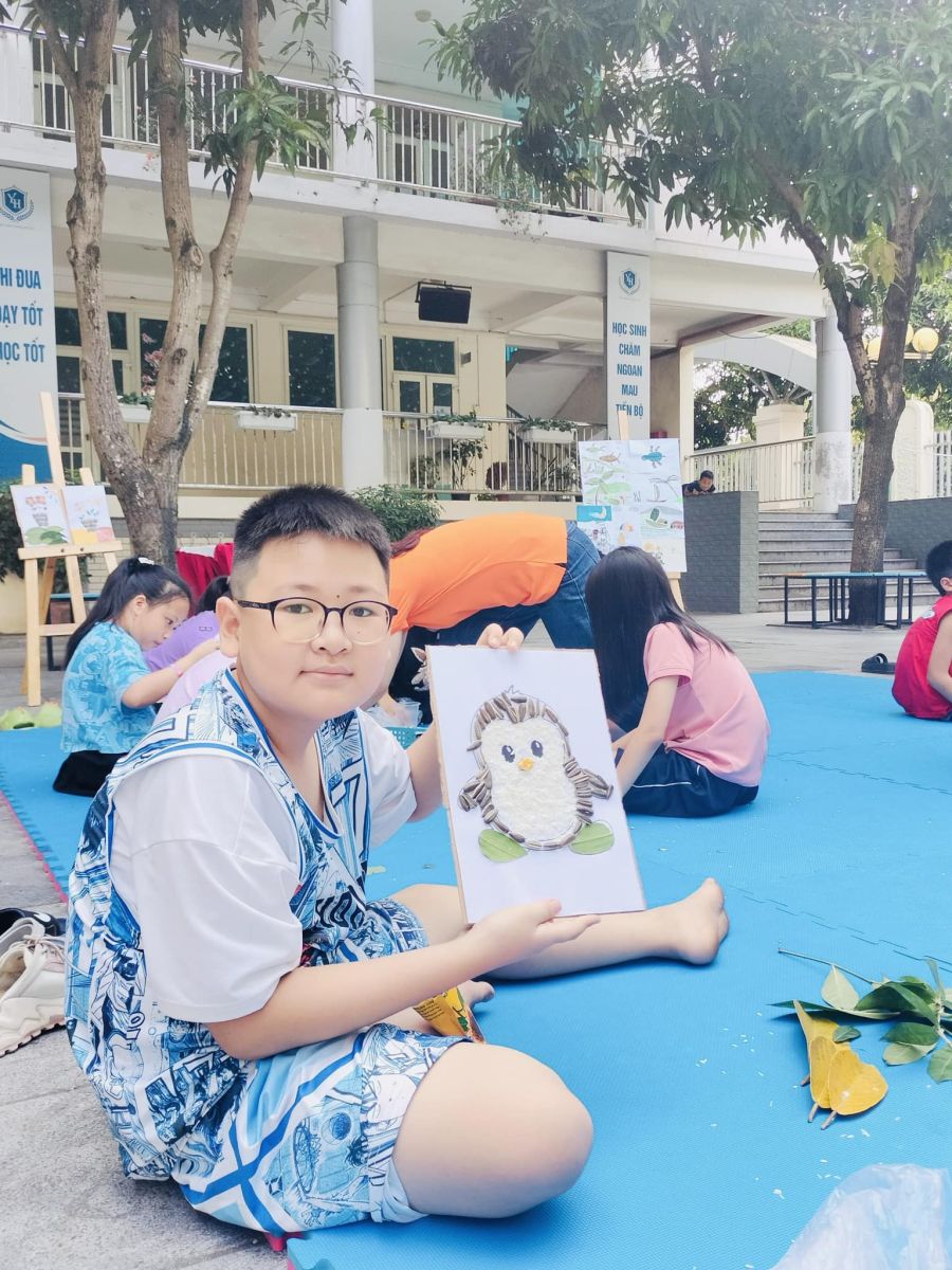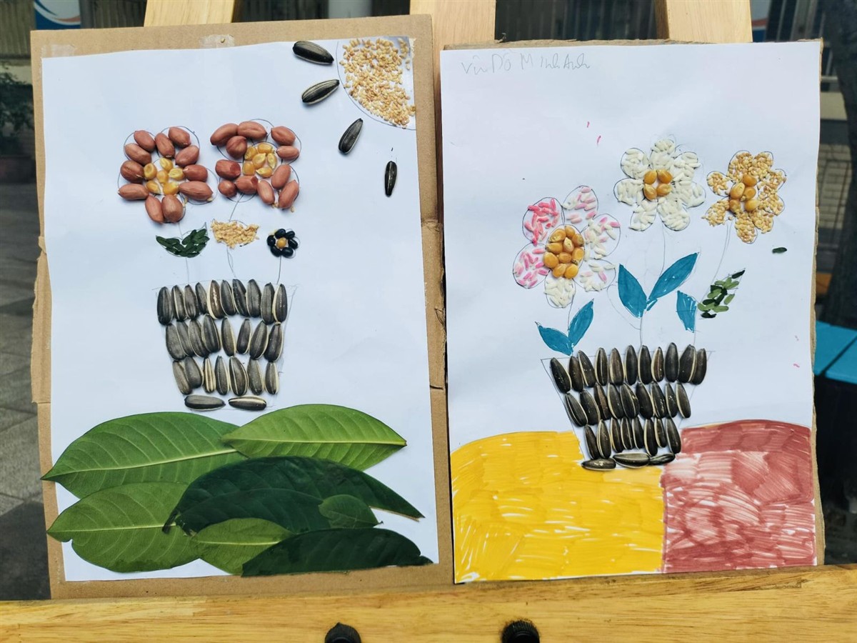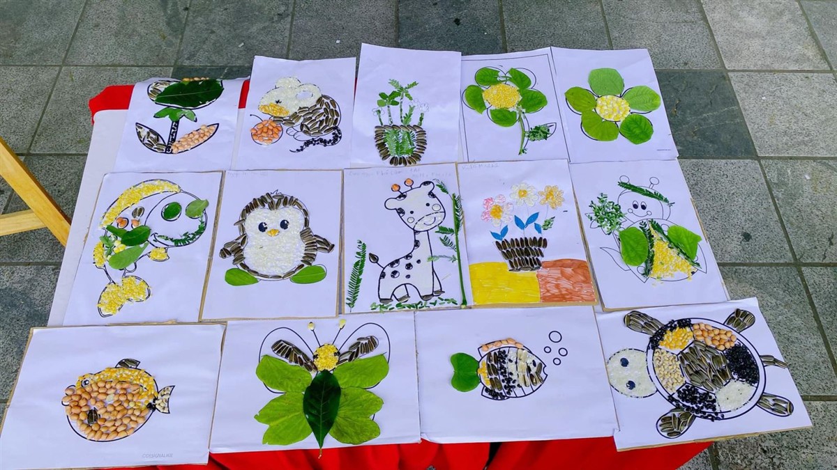 Từ những nguyên liệu từ thiên nhiên, gần gũi với cuộc sống đời thường như: lá cây, hạt ngô, hạt gạo, hạt đỗ,... và với bàn tay khéo léo của mình, các em đã chăm chút, tỉ mỉ để tạo ra những tác phẩm độc đáo. Từ hoạt động này, thầy cô đã phát hiện được tài năng và trí tưởng tượng phong phú tiềm ẩn trong mỗi học sinh.