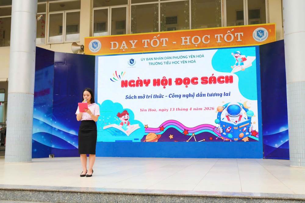 Sáng thứ Hai đầu tuần, trong không khí trang nghiêm và đầy hứng khởi, Trường Tiểu học Yên Hoà đã long trọng tổ chức buổi chào cờ kết hợp khai mạc Ngày hội đọc sách với chủ đề “Sách mở tri thức, công nghệ dẫn tương lai”. Đây là hoạt động ý nghĩa nhằm lan tỏa văn hóa đọc, khơi dậy niềm yêu thích sách và định hướng học sinh tiếp cận tri thức trong thời đại công nghệ số.
