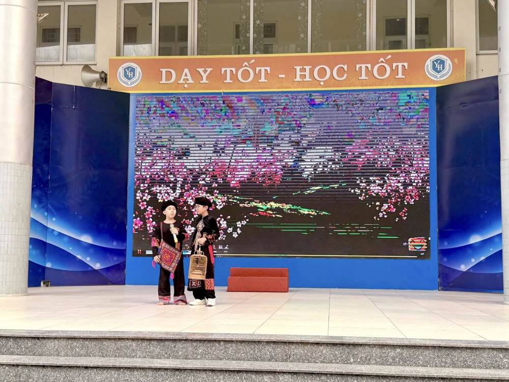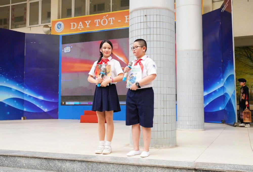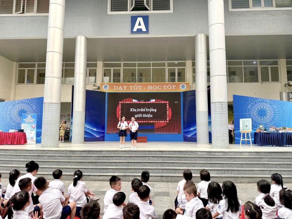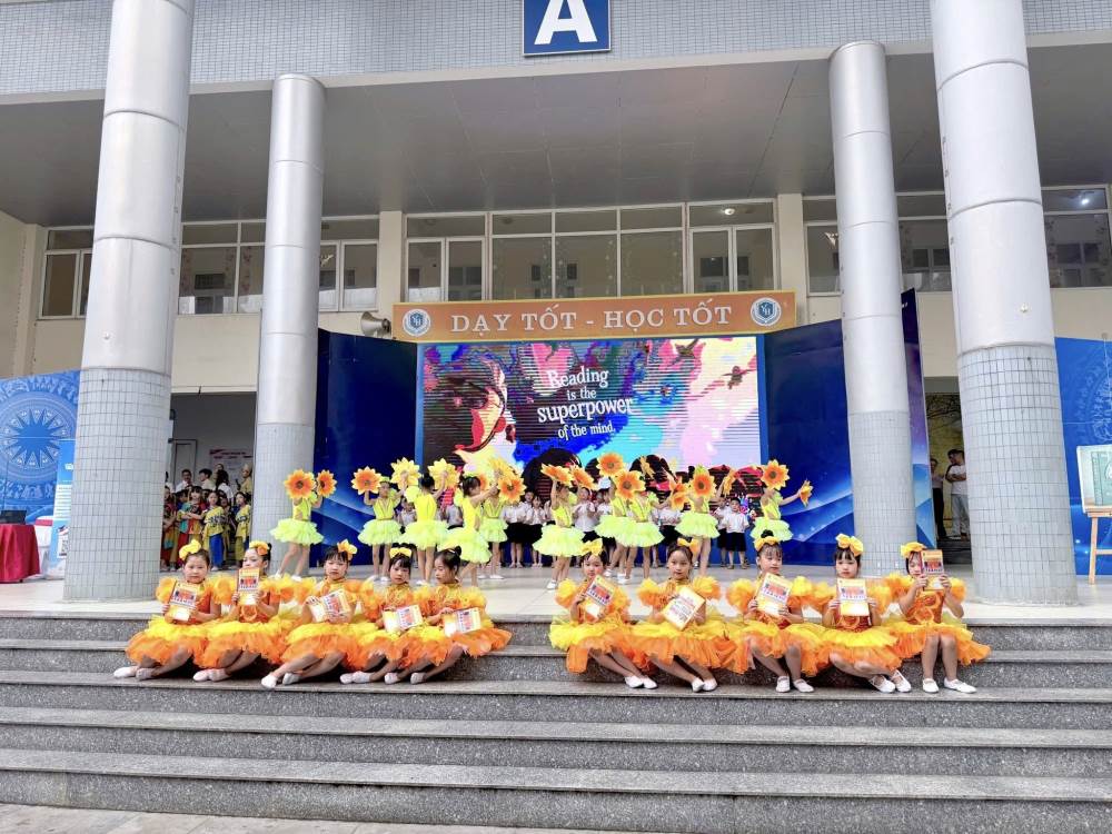 Mở đầu chương trình là những tiết mục văn nghệ đặc sắc chào mừng ngày hội. Giai điệu trong trẻo, hồn nhiên của bài hát “Trang sách hồng yêu thương” do các em học sinh lớp 1A3 và 1A4 biểu diễn đã mang đến không khí tươi vui, rộn ràng. Tiếp nối là tiết mục “Bắc kim thang” do học sinh nhà trường thể hiện, tạo nên những phút giây sinh động, cuốn hút và đầy cảm xúc.