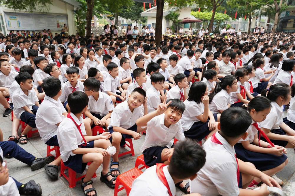 Ngay sau đó, toàn trường bước vào nghi thức chào cờ đầu tuần trong không khí trang nghiêm, thể hiện tinh thần kỉ luật và lòng tự hào dân tộc của thầy và trò nhà trường.