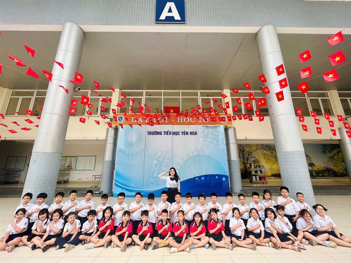 Trường Tiểu học Yên Hòa luôn xác định: Giáo dục lòng yêu nước không chỉ nằm trên trang sách, mà còn được gieo mầm từ những hoạt động thường nhật, những khoảnh khắc ý nghĩa như thế này.