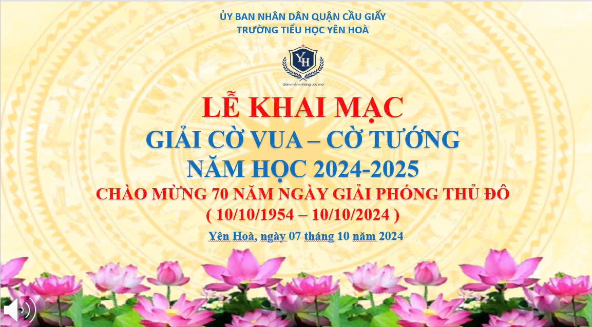 Trong không khí vui tươi, phấn khởi chào mừng 70 năm Ngày Giải phóng Thủ đô (10/10/1954 - 10/10/2024), nhằm giúp cho học sinh có sân chơi lành mạnh, phát triển trí tuệ, rèn thêm tính kỉ luật, sáng ngày 07/10/2024, trường Tiểu học Yên Hòa vui mừng tổ chức Giải cờ vua cờ tướng cấp trường lần thứ VI. Giải đấu đã thu hút được gần 200 kỳ thủ nhí đến từ 5 khối lớp tham gia tranh tài. Hoạt động này luôn được sự quan tâm rất lớn từ phía Ban giám hiệu nhà trường và sự ủng hộ nhiệt tình của đông đảo bậc phụ huynh và các em học sinh.