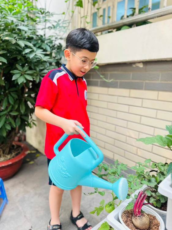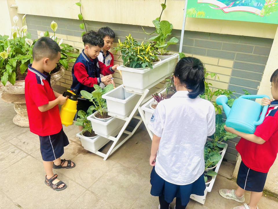 Hoạt động chăm sóc vườn cây giúp các con học sinh hiểu hơn về giá trị của lao động, biết trân trọng và bảo vệ môi trường sống xung quanh. Nhìn những mầm xanh vươn mình sau mỗi buổi chăm sóc, các con càng thêm tự hào về công trình nhỏ nhưng ý nghĩa lớn mà mình đang đóng góp.