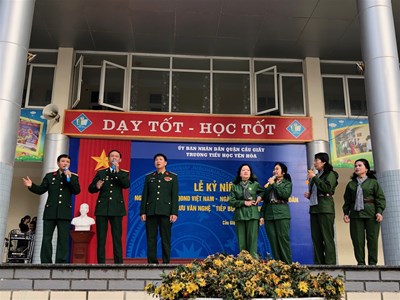 Đến dự buổi lễ có các bác cựu chiến binh Phường Yên Hòa, Ban Giám hiệu, cán bộ, giáo viên, nhân viên, cùng toàn thể các em học sinh. Ý nghĩa cao đẹp của ngày 22/12 được thể hiện sâu sắc trong lời tuyên truyền của thầy Tổng phụ trách. Lời tuyên truyền khẳng định vai trò to lớn của Quân đội nhân dân Việt Nam trong thế kỉ XX. Từ những chiến sĩ tuyên truyền giải phóng quân được trang bị đơn sơ trong những ngày đầu thành lập, đến những chiến sĩ giải phóng quân hóa thân mình thành dáng hình của đất nước trong thế kỉ XX là cả một cuộc hành trình vĩ đại đi tìm chân lí độc lập tự do của những người lính Cụ Hồ. Đất nước bị xâm lăng, quê hương bị giặc tàn phá, chính quân đội ta, chính những người lính đã dâng hiến tuổi xuân của cuộc đời mình để đem lại cho dân tộc ta nền hòa bình, độc lập.