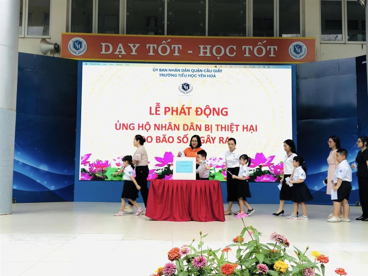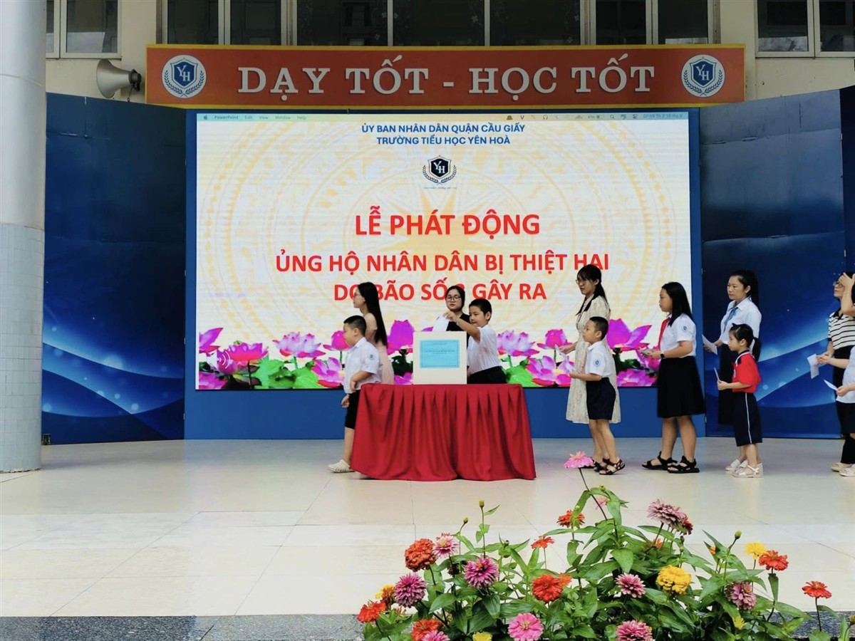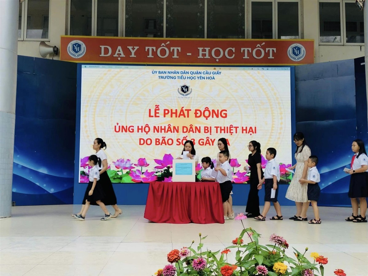 Sáng nay, ngày 16/9/2024, trong giờ chào cờ đầu tuần, phát huy tinh thần "tương thân tương ái", trường Tiểu học Yên Hoà đã tổ chức chương trình ủng hộ đồng bào miền Bắc bị ảnh hưởng nặng nề do cơn bão số 3 gây ra trong thời gian vừa qua.