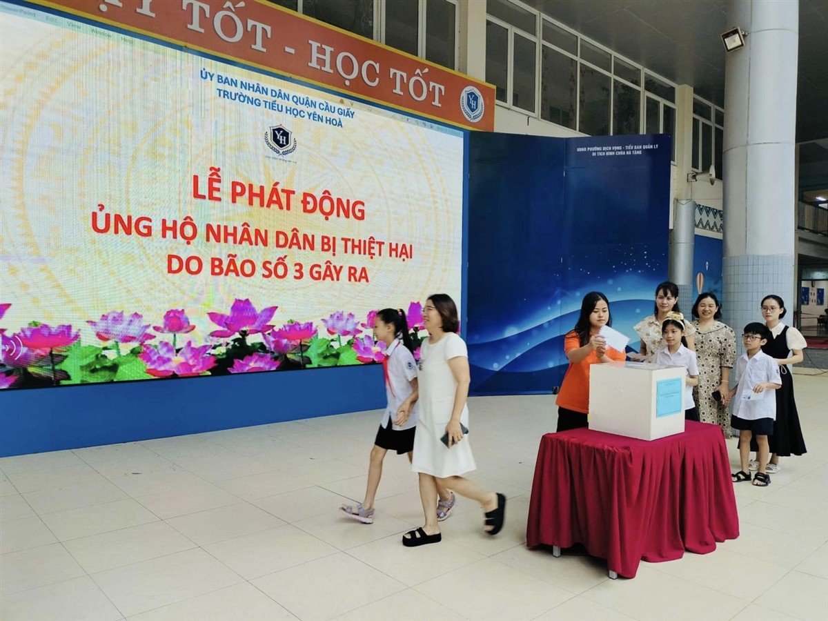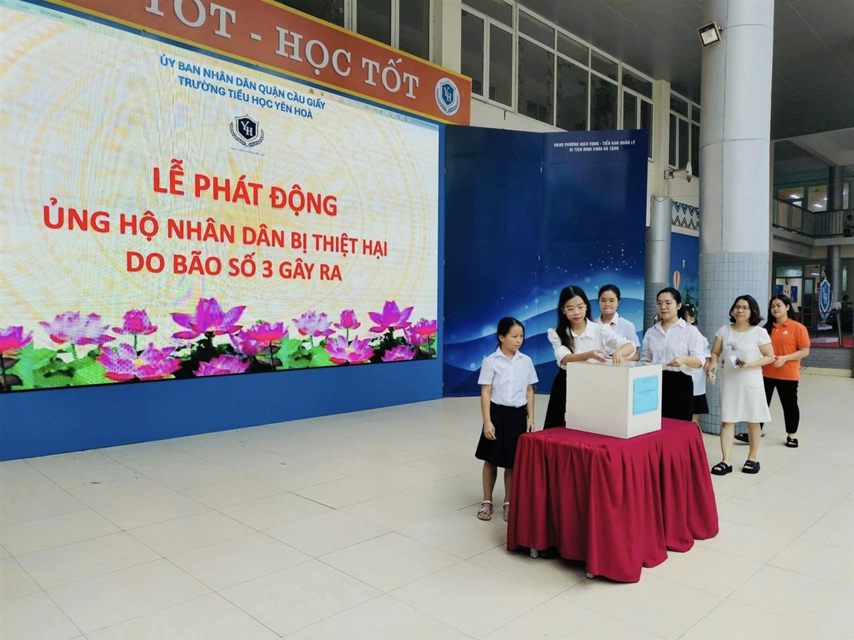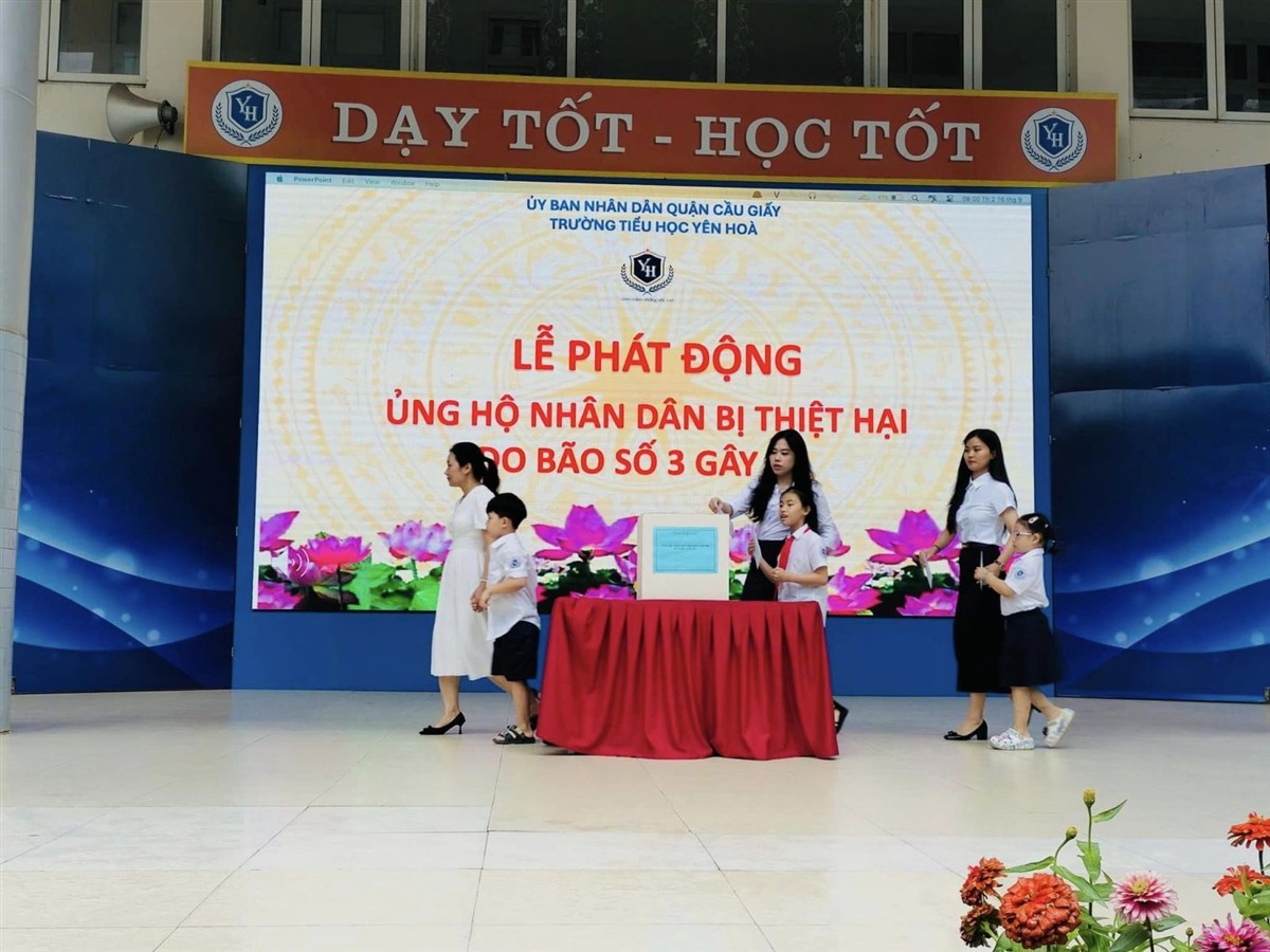 Sáng nay, ngày 16/9/2024, trong giờ chào cờ đầu tuần, phát huy tinh thần "tương thân tương ái", trường Tiểu học Yên Hoà đã tổ chức chương trình ủng hộ đồng bào miền Bắc bị ảnh hưởng nặng nề do cơn bão số 3 gây ra trong thời gian vừa qua.