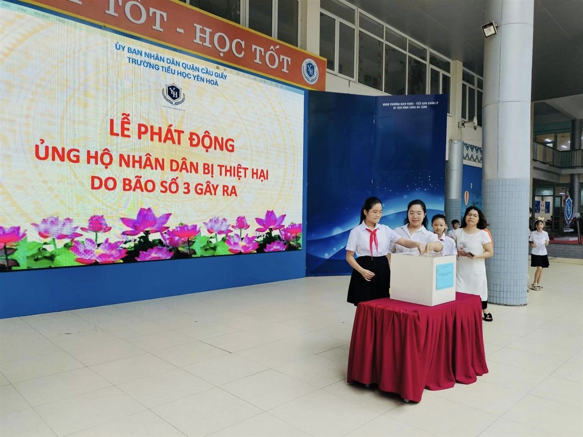 TRƯỜNG TIỂU HỌC YÊN HOÀ THAM GIA ỦNG HỘ NHÂN DÂN BỊ THIỆT HẠI DO CƠN BÃO SỐ 3 GÂY RA