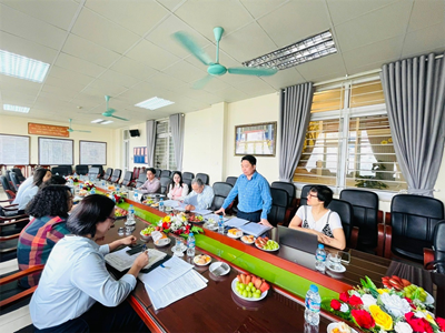 Sau khi giới thiệu và thông qua lịch làm việc, Đoàn khảo sát đã lắng nghe nhà trường báo cáo về việc triển khai thực hiện các chương trình, đề án của Thủ tướng Chính phủ về y tế trường học và chăm sóc sức khỏe trẻ em, học sinh giai đoạn 2019 – 2025. Tiếp đó, các chuyên gia đã tiến hành phỏng vấn sâu đối với Giám hiệu và cán bộ y tế học đường về việc triển khai các nội dung như: khám sức khỏe định kỳ, dinh dưỡng học đường, phòng chống dịch bệnh, truyền thông nâng cao nhận thức sức khỏe cho học sinh,… và điều hành Thảo luận nhóm với đại diện giáo viên trong trường về những thuận lợi, khó khăn, đề xuất kiến nghị thực tế trong quá trình triển khai các chương trình, đề án. Buổi làm việc đã diễn ra trong không khí khẩn trương, nghiêm túc với tinh thần chia sẻ cởi mở, ghi nhận nhiều ý kiến thiết thực và những sáng kiến sáng tạo của đội ngũ cán bộ, giáo viên, nhân viên tham gia phỏng vấn và thảo luận.