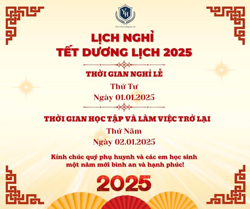 Trường Tiểu học Yên Hoà thông báo Lịch nghỉ Tết Dương lịch năm 2025