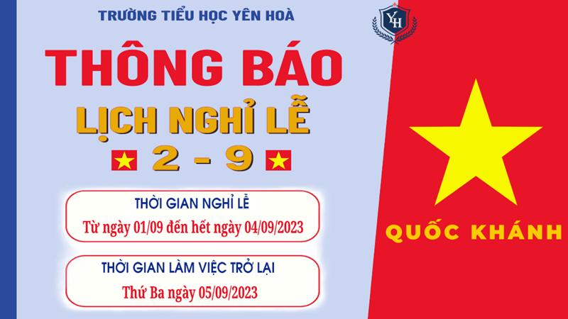Trường Tiểu học Yên Hoà thông báo Lịch nghỉ lễ Quốc khánh 2/9. Trân trọng./.