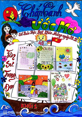 T báo tường s đặc bit chào mng ngày 20/11 ca khi 1 vi ch đề: CHĂP CÁNH ƯỚC MƠ được trang trí vi hình nh con thuyn tri thc được các thy cô giáo chèo lái ch các em hc sinh đến vi bao chân tri kiến thc mi l. Nhng bài hc được cách điu thành nhng cánh bum đưa các em hc sinh cp bến tri thc mi. Tình yêu thương ca các thy cô như nhng cánh chim nâng đỡ, chp cánh cho ước mơ các em bay cao, bay xa.