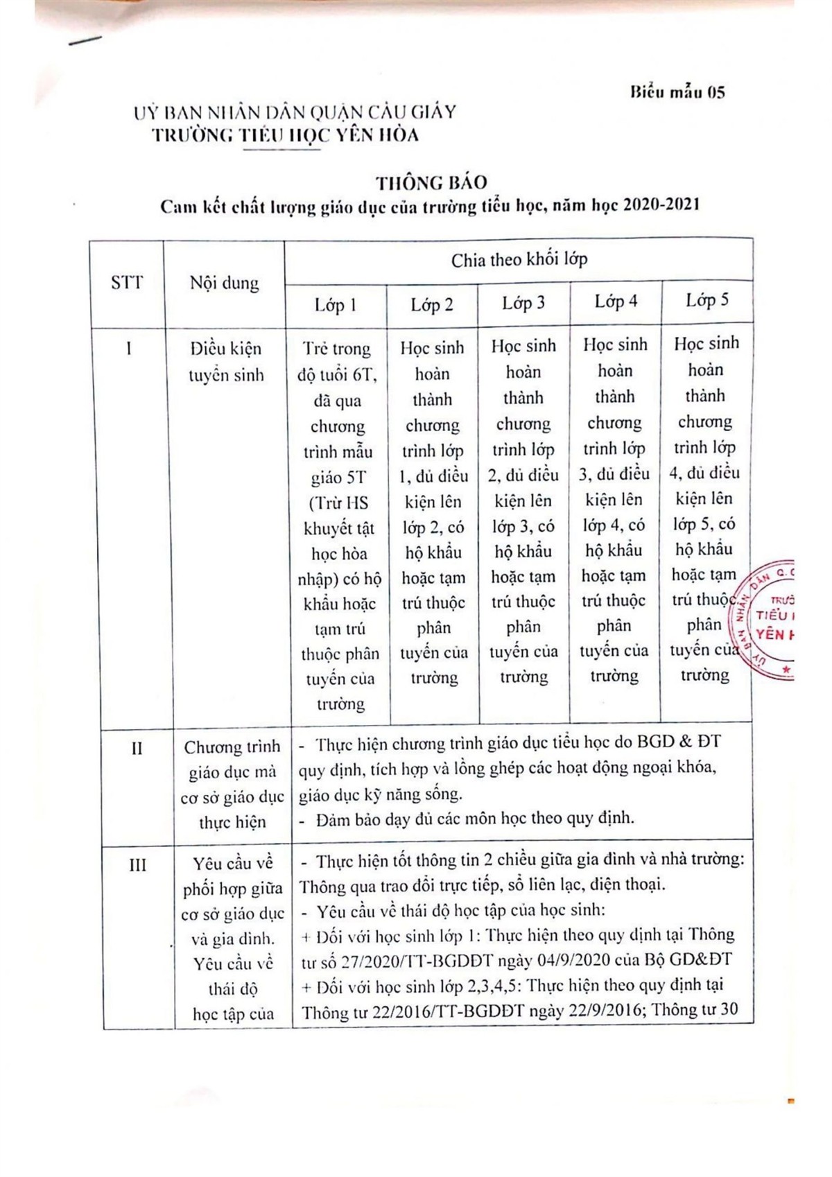 TRƯỜNG TIỂU HỌC YÊN HOÀ