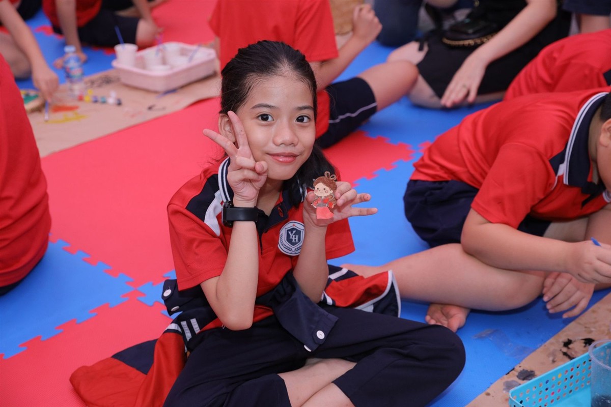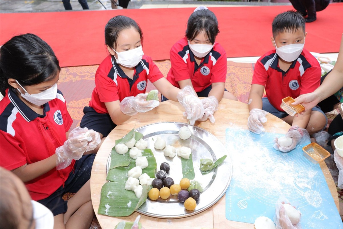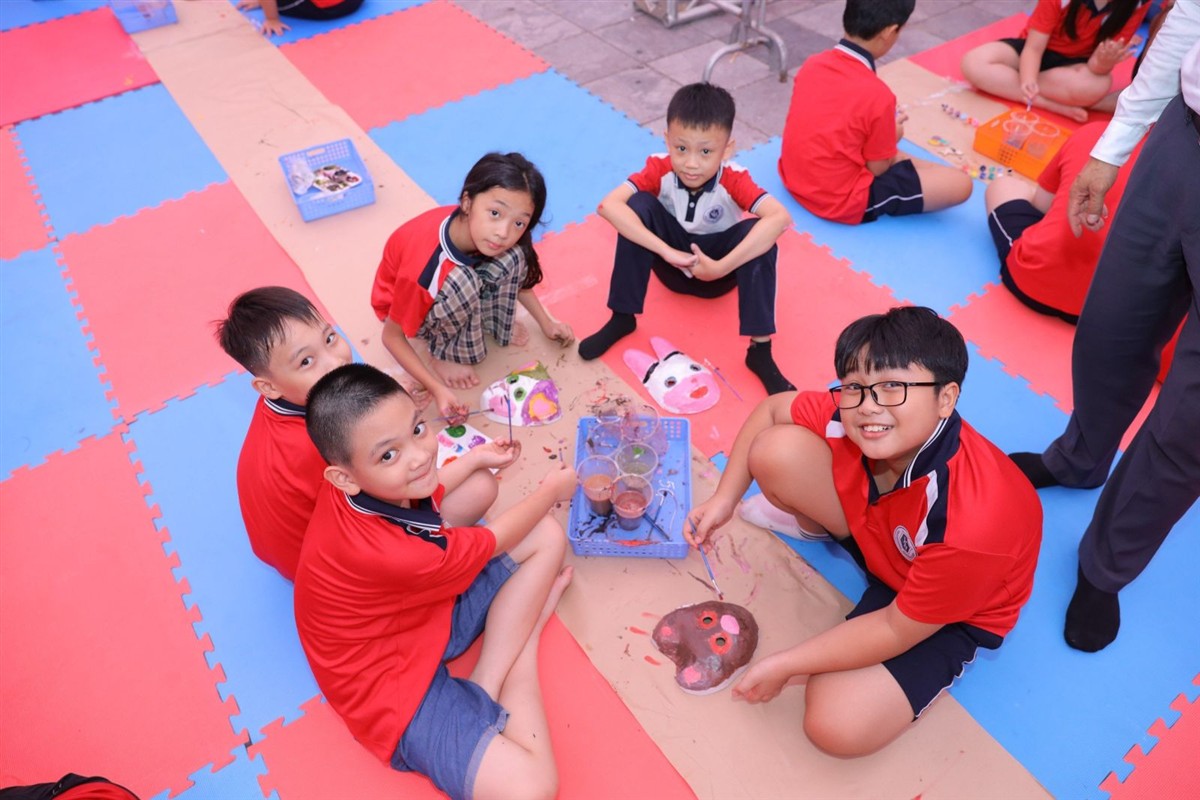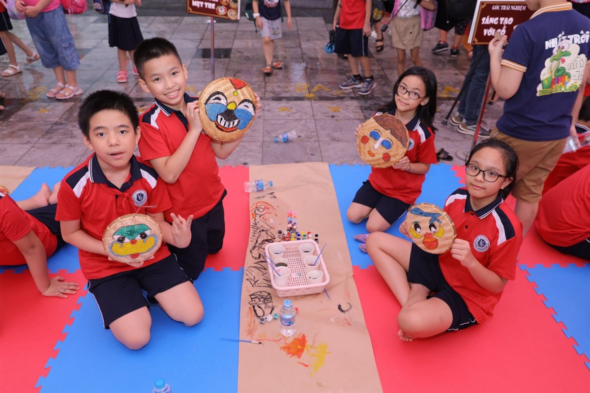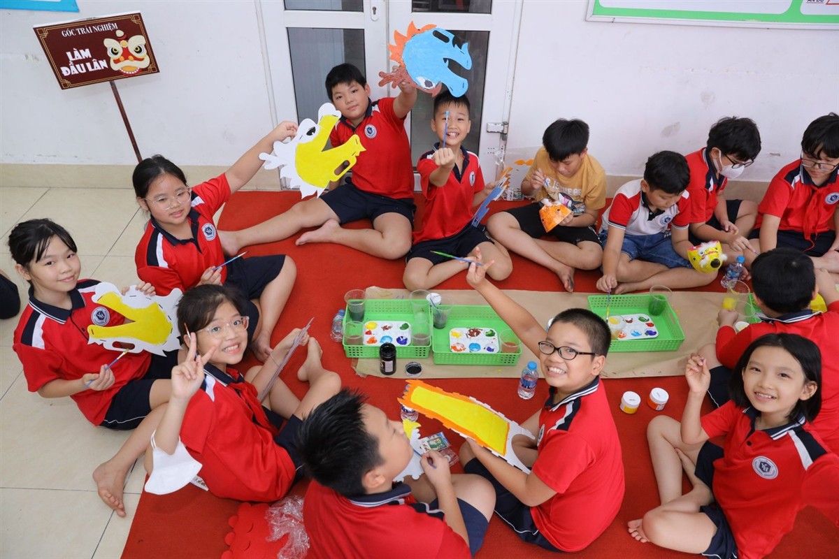 Sau bao ngày chờ đợi, Ngày hội của chúng mình cũng đã đến. Đứa nào đứa nấy háo hức gần như không thể tập trung học tập. Chưa kể đến thời tiết cứ mưa không ngớt làm chúng mình lo lắng không biết hoạt động này liệu có bị hoãn lại hay không. 3h30, tiếng trống trường vang lên giòn giã báo hiệu giờ ra chơi kết thúc. Tiếng thầy An Tổng phụ trách vừa vang lên: “Đã đến giờ diễn ra Hoạt động trải nghiệm của học sinh khối 5” là từ các hành lang, chúng mình ùa ra sân trường, nhanh chóng ngồi vào vị trí đã được sắp xếp. Dưới sự hướng dẫn của thầy cô, sự hỗ trợ của các mẹ, các nhóm đều tập trung hoàn thành sản phẩm của mình. Cơn mưa ngoài trời cũng không thể làm giảm bớt sức nóng và không khí hào hứng, khẩn trương tại các góc trải nghiệm. Sau gần nửa tiếng miệt mài, những sản phẩm đầu tiên là những chiếc bánh dẻo, những chiếc mặt nạ ngộ nghĩnh, chiếc đèn ông sao, chiếc đầu lân sặc sỡ và những con thú bằng củ quả đã lần lượt ra đời. Mặc dù tay ai cũng lấm lem nào bột, nào màu nhưng nét mặt thì không giấu được sự thích thú. Hơn 500 chiếc bánh trung thu, gần 200 chiếc mặt nạ các loại, 100 chiếc đèn ông sao cùng rất nhiều các sản phẩm ngộ nghĩnh khác chính là kết quả sau một buổi chiều hoạt động tích cực của chúng mình.