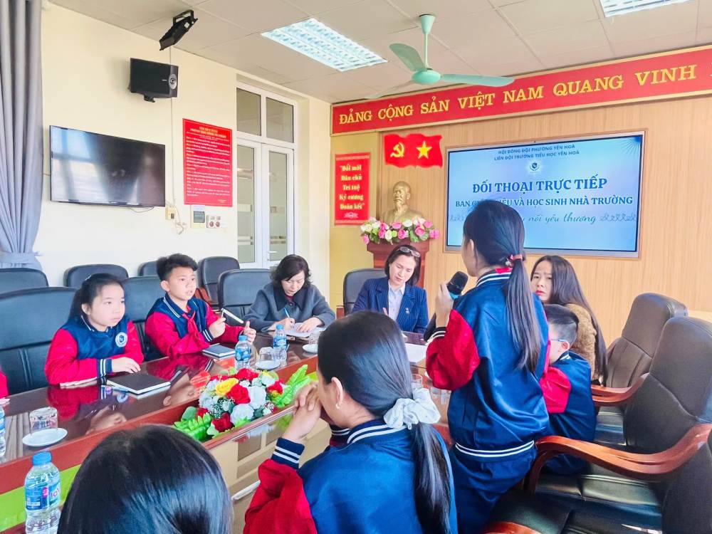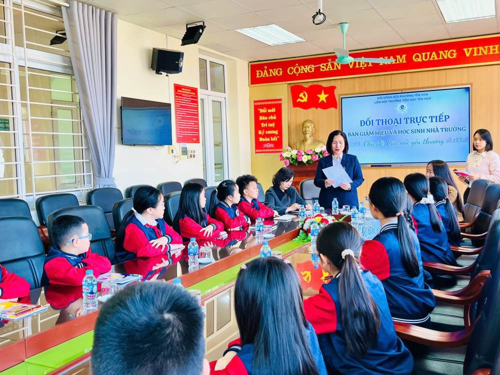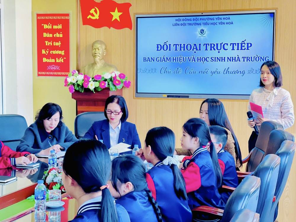 Nhằm tăng cường sự gắn kết giữa nhà trường và học sinh, đồng thời lắng nghe những tâm tư, nguyện vọng, ý kiến của các em trong quá trình học tập và sinh hoạt tại trường, hôm nay trường Tiểu học Yên Hoà đã tổ chức chương trình đối thoại giữa Ban Giám hiệu và học sinh với chủ đề “Cầu nối yêu thương”.