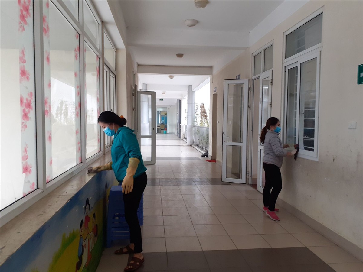 Để chủ động phòng chống dịch bệnh viêm đường hô hấp cấp do virus corona gây ra, sáng nay ngày 22/2, toàn bộ cán bộ, giáo viên, nhân viên và cùng đông đảo các bậc phụ huynh trường tiểu học Yên Hòa đã tiến hành vệ sinh môi trường khử khuẩn lần 4 bằng chloramine B.