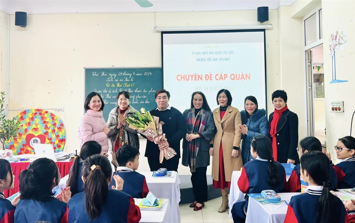 Thực hiện một trong những nhiệm vụ trọng tâm của năm học[A1] , phát huy truyền thống dạy tốt – học tốt của nhà trường, chiều thứ Hai (29/1/2024), thầy giáo Nguyễn Quang Duy – giáo viên khối 4 đã đại diện trường Tiểu học Yên Hòa thực hiện một tiết dạy chuyên đề cấp Quận môn Lịch sử và Địa lí lớp 4, với sự tham dự của đại diện cán bộ, giáo viên 25 trường tiểu học thuộc quận Cầu Giấy và 2 đơn vị trường liên kết thuộc huyện Phúc Thọ.