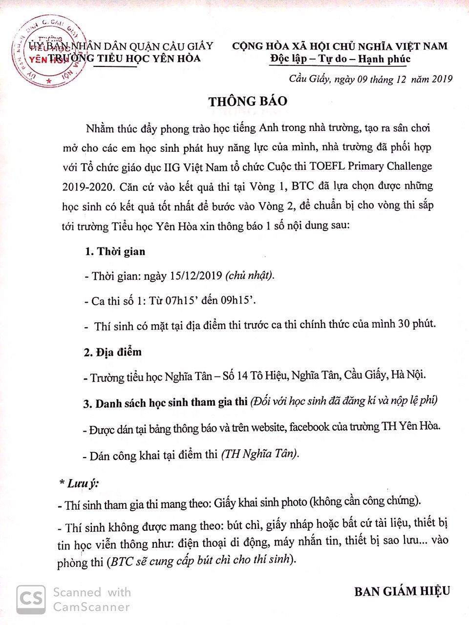 Danh sách chi tiết kính mời quý phụ huynh xem trong tệp đính kém: Danh sách Vòng 2 cuộc thi TOEFL Primary Challenge 2019-2020.xlsx