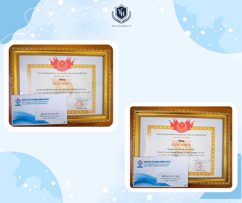 Đây là phần thưởng ý nghĩa của Đoàn phường Yên Hoà dành tặng Chi đoàn trường Tiểu học Yên Hoà, cũng là nguồn động lực quý báu cho công tác Đoàn và thanh thiếu nhi của nhà trường.