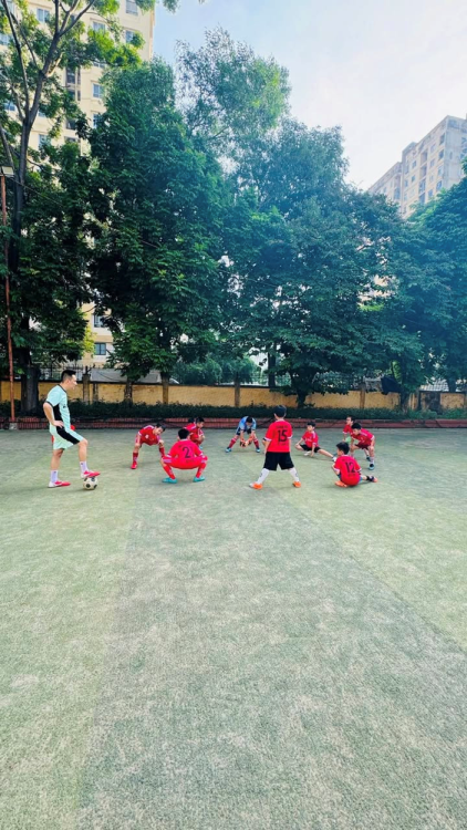 Trên sân cỏ, các cầu thủ nhí từ khối 4 và khối 5 đã và đang nỗ lực hết mình trong từng buổi tập. Những giọt mồ hôi rơi xuống là minh chứng cho quyết tâm và tinh thần kiên trì. Mỗi đường chuyền, mỗi cú sút, mỗi bước chạy đều thể hiện tinh thần “quyết chiến – quyết thắng” đầy sôi nổi và tự hào.