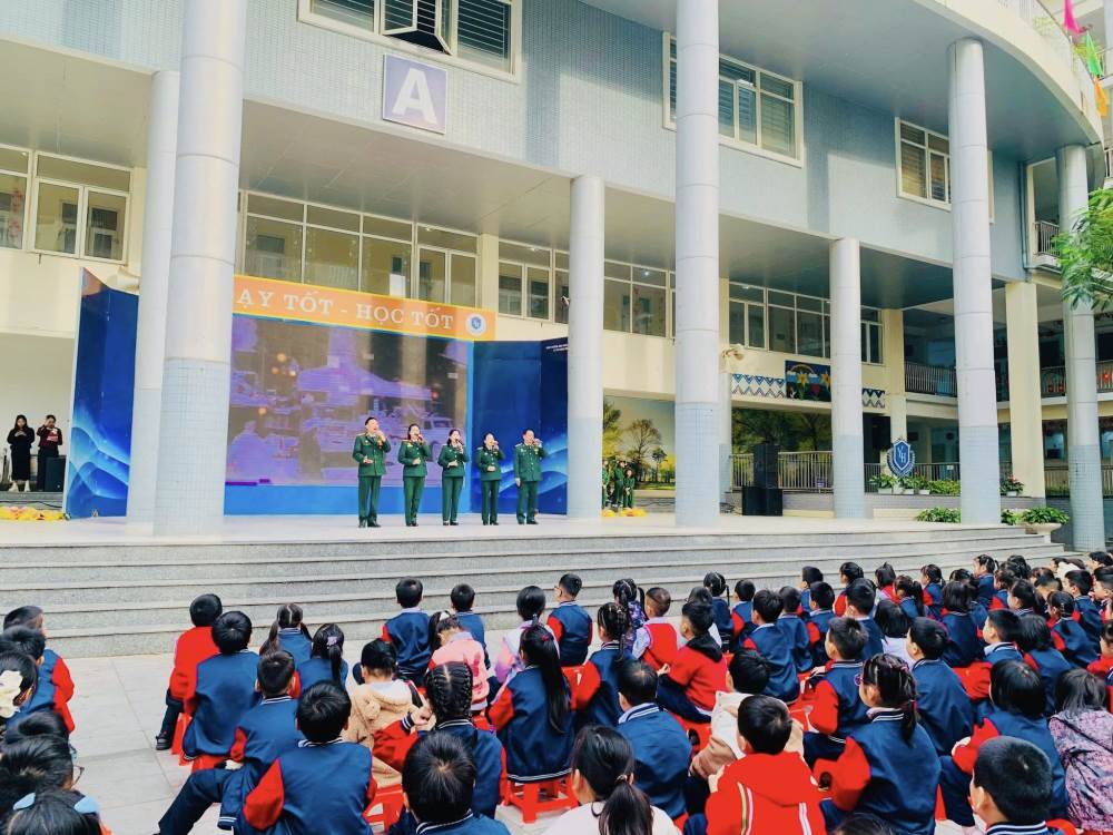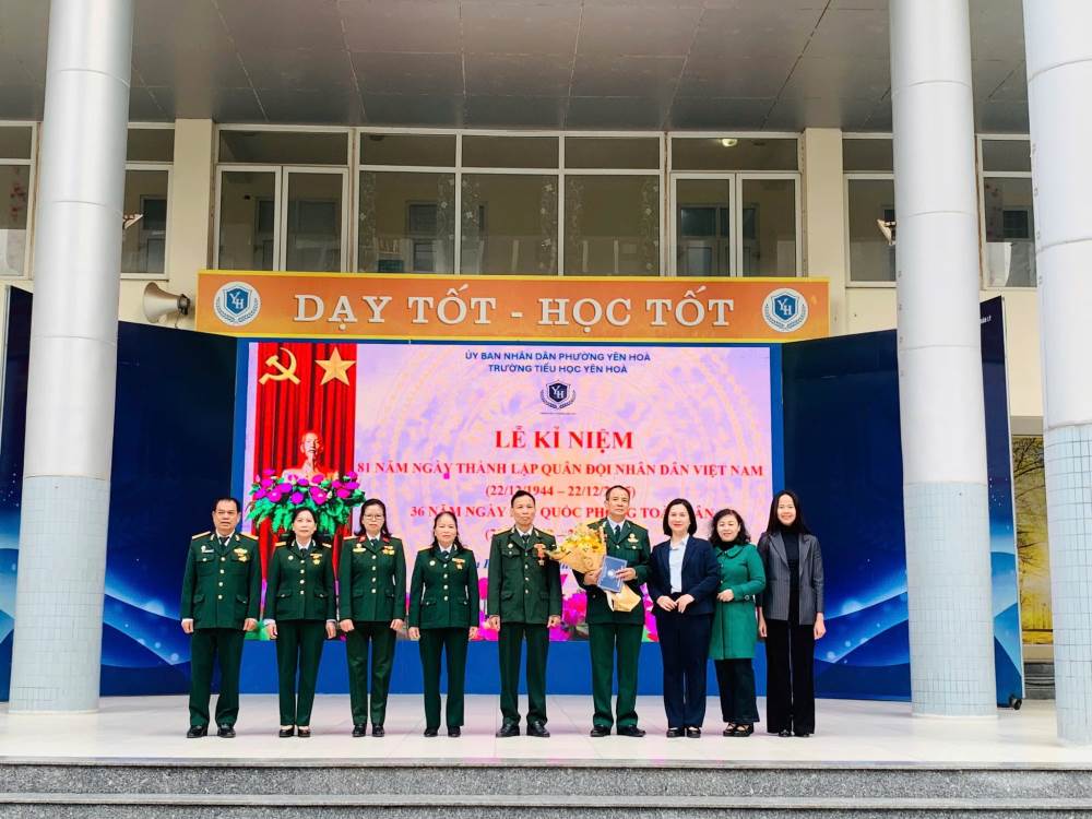 Buổi lễ vinh dự đón tiếp các bác đại diện Hội Cựu chiến binh phường Yên Hoà, đại diện Ban phụ huynh nhà trường cùng Ban Giám hiệu, toàn thể cán bộ, giáo viên, nhân viên và gần 1800 em học sinh tham dự. Đây là dịp ý nghĩa để thầy trò nhà trường cùng nhau ôn lại truyền thống vẻ vang của Quân đội Nhân dân Việt Nam – đội quân anh hùng của dân tộc.