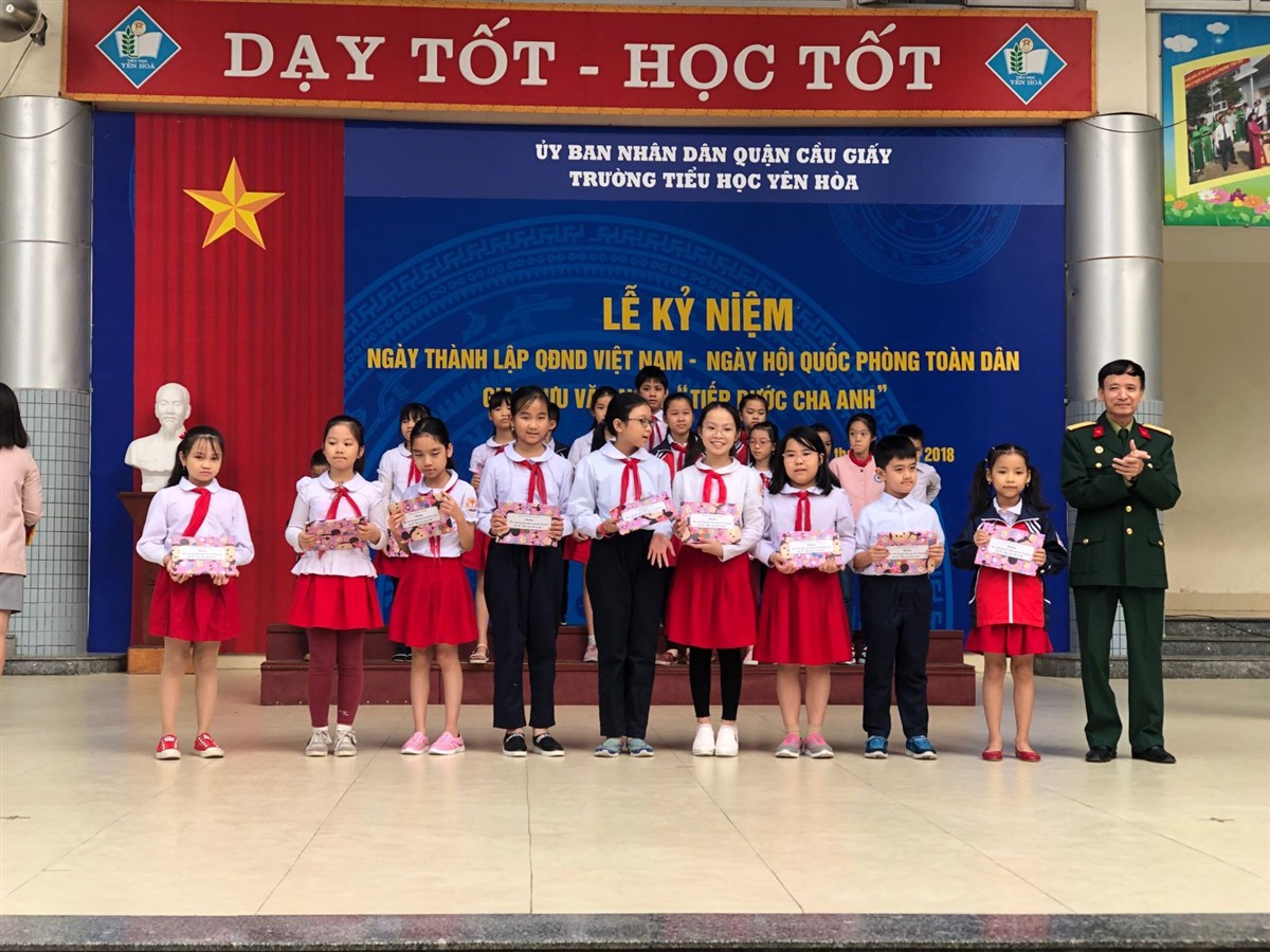 Nhằm ôn lại truyền thống anh hùng của quân và dân ta trong cuộc trường chinh vĩ đại bảo vệ đất nước qua hai cuộc kháng chiến chống thực dân Pháp và đế quốc Mĩ, đồng thời giáo dục tư tưởng yêu nước, ý thức trách nhiệm của tuổi trẻ với quê hương trong thời đại mới, sáng ngày 21 tháng 12 năm 2018 trường TH Yên Hòa đã long trọng tổ chức buổi lễ kỷ niệm 74 năm ngày thành lập Quân đội nhân dân Việt Nam 22/12/1944 - 22/12/2018 và 29 năm ngày hội Quốc phòng toàn dân 22/12/1989 - 22/12/2018.