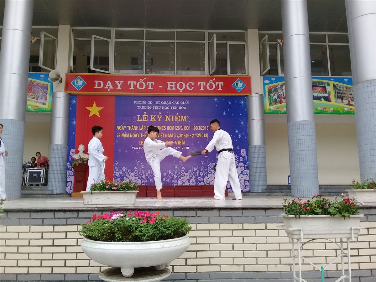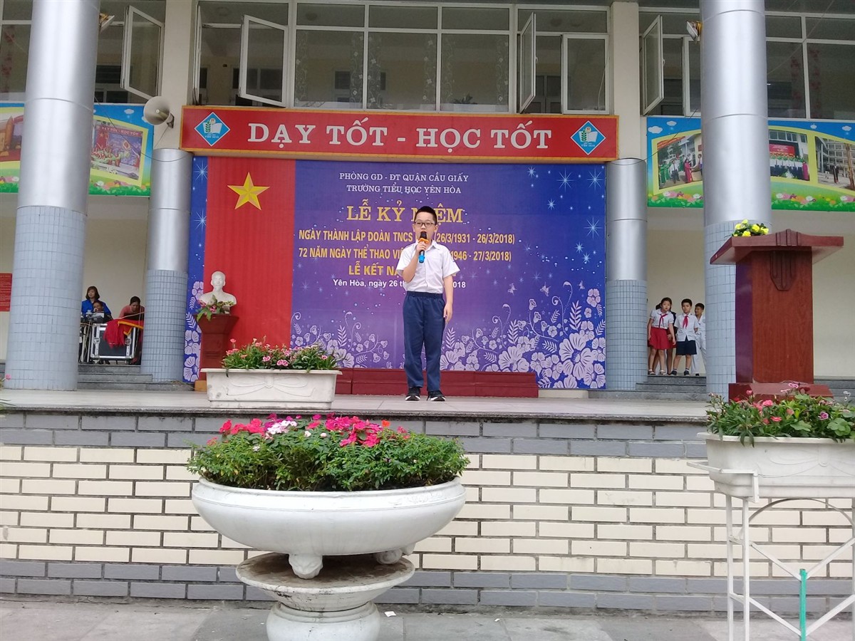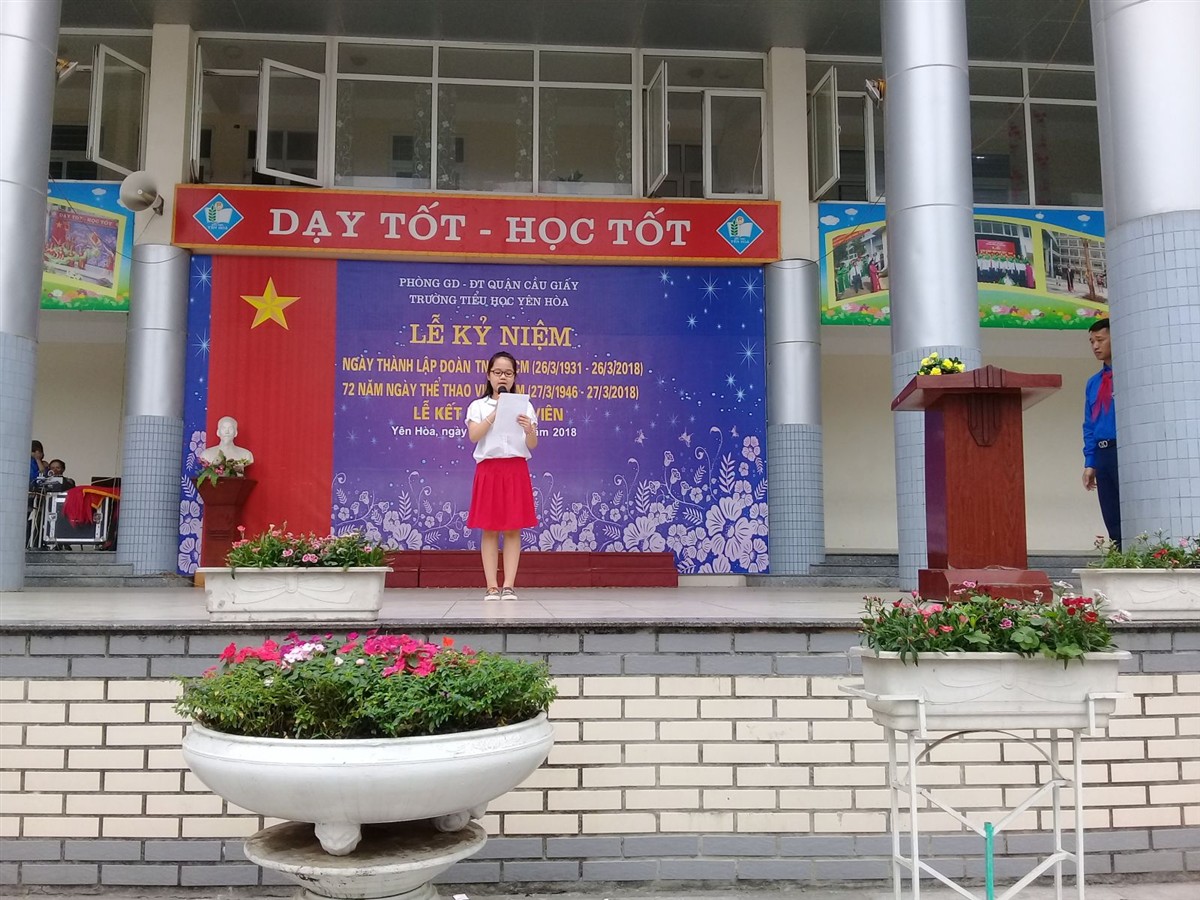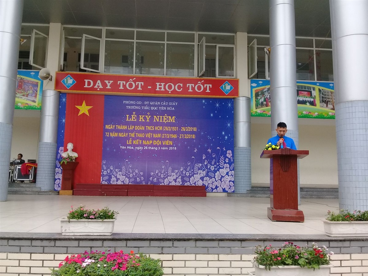 Tham dự buổi lễ có toàn thể cán bộ giáo viên, nhân viên và học sinh trong nhà trường. Mở đầu buổi lễ toàn trường làm lễ chào cờ đầu tuần, tiếp theo là lễ kết nạp đội viên cho 60 em học sinh khối 3. Cuối cùng là các tiết mục văn nghệ chào mừng ngày 26/3 và ngày thể thao Việt Nam của các giáo viên trong chi đoàn và học sinh nhà trường.