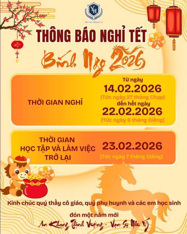 Trường Tiểu học Yên Hoà trân trọng thông báo Lịch nghỉ TẾT NGUYÊN ĐÁN năm 2026