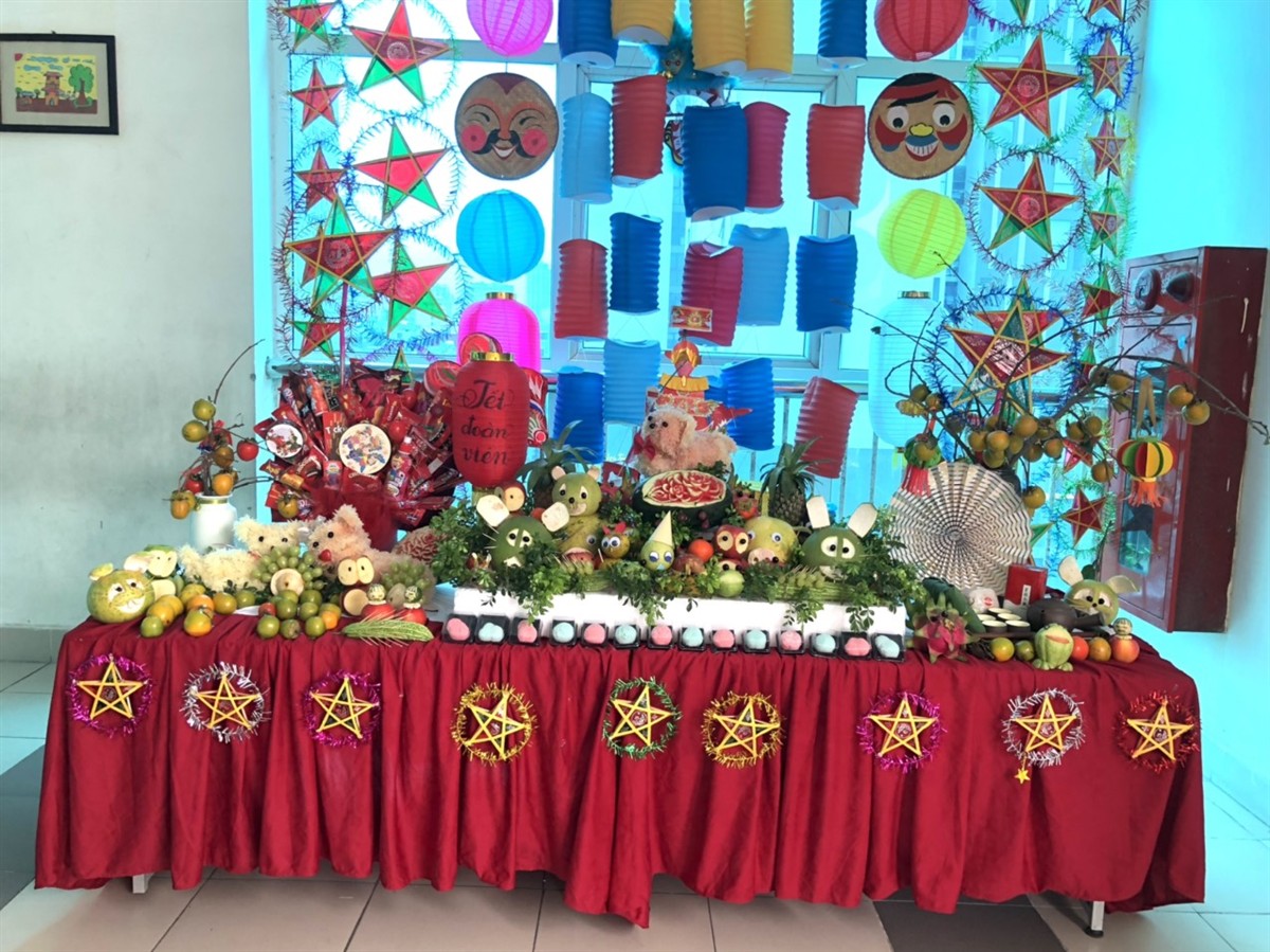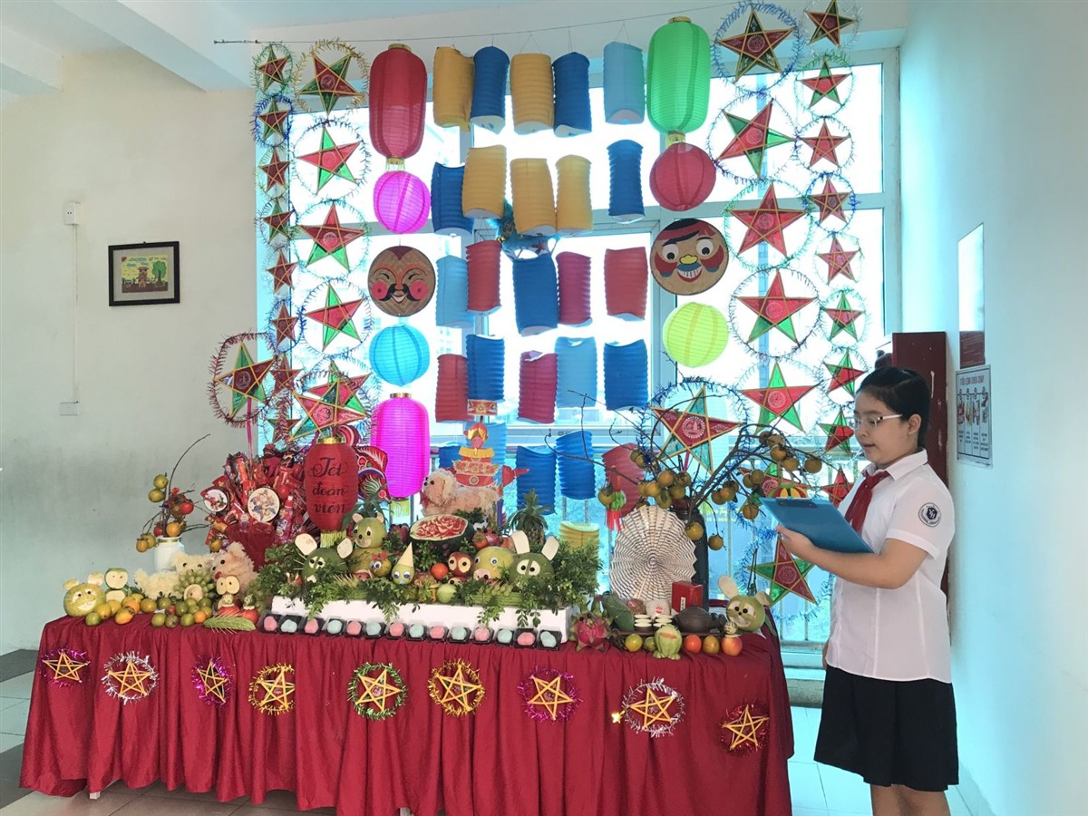 Mùa thu đến khơi gợi trong lòng người cũng như trong tâm hồn trẻ thơ một sự háo hức khôn nguôi về ngày Tết trung thu.. Là một ngày tết cổ truyền của dân tộc, tết trung thu không thể thiếu nào thiếu được mâm cỗ trông trăng. Các bạn lớp 5A, 5B, 5C VÀ 5D đã trình bày ý tưởng về mâm cỗ.Với chủ đề “Vui Tết đoàn viên”