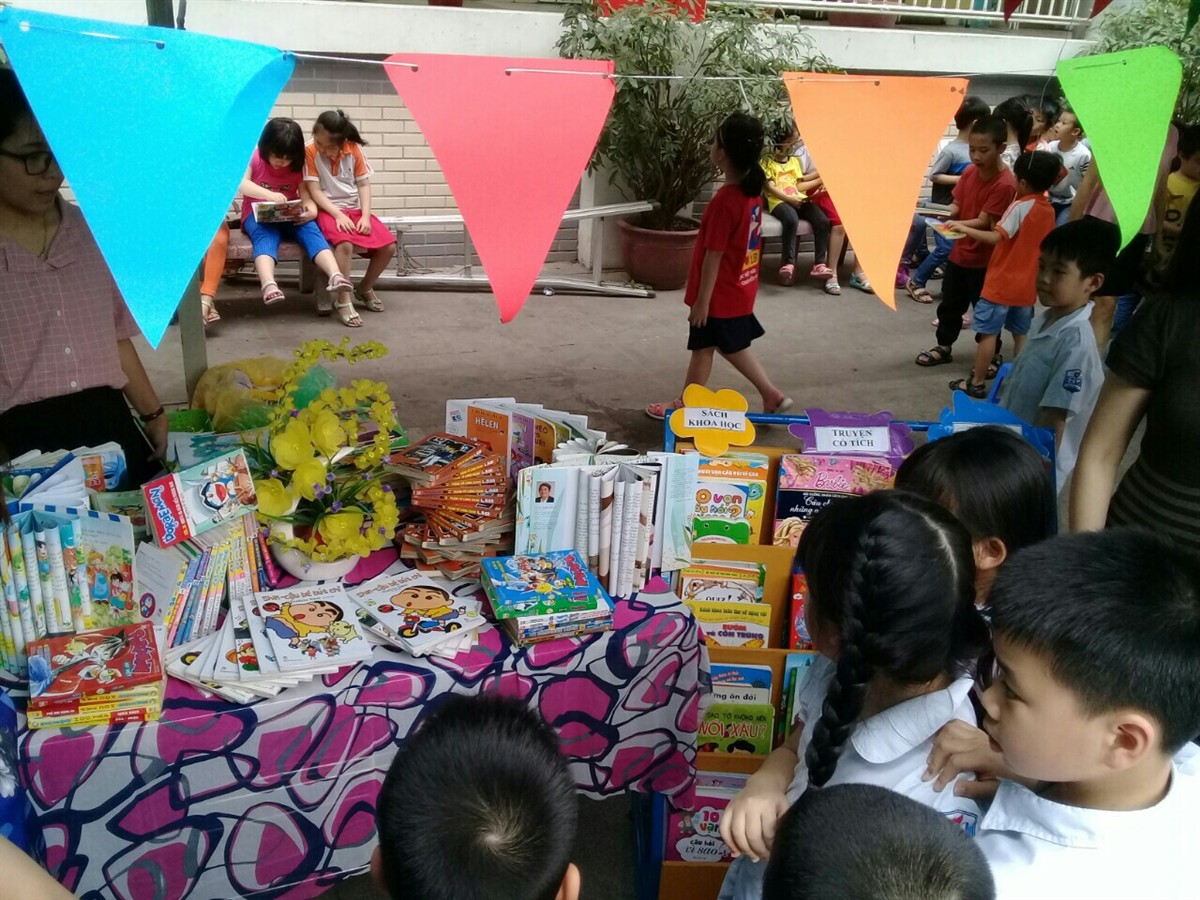 Sau khi trưng bày sách, các khối lớp đã tổ chức cho học sinh tự giới thiệu một số cuốn sách mà các em yêu thích và kể lại những câu chuyện hay, ý nghĩa mà các em đã được đọc. Tiếp theo là phần mà các em học sinh hứng thú nhất đó là tự chọn cho mình những cuốn sách hay để đọc và trao đổi sách cho nhau tạo nên không khí vui tươi mà ấm áp tình bạn bè, tình thầy trò.