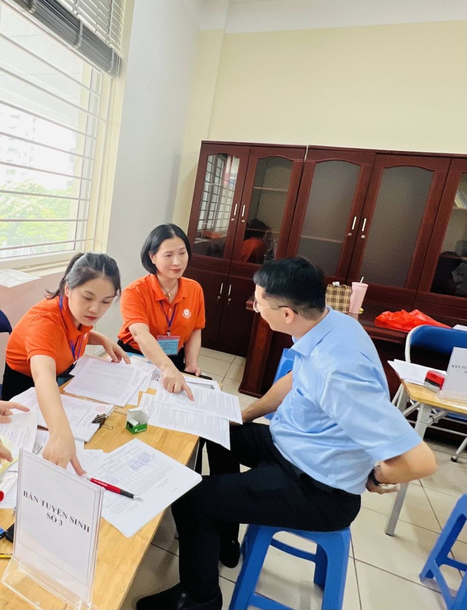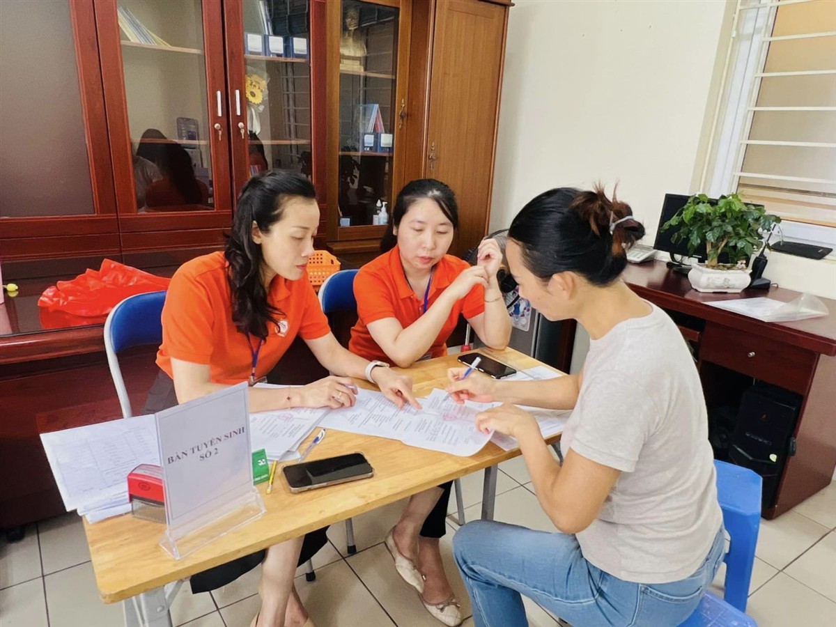 Ban tuyển sinh nhà trường nhiệt tình hỗ trợ phụ huynh trong ngày tuyển sinh trực tuyến đầu tiên và những món quà đáng yêu đã được gửi tặng đến các em học sinh lớp 1.
